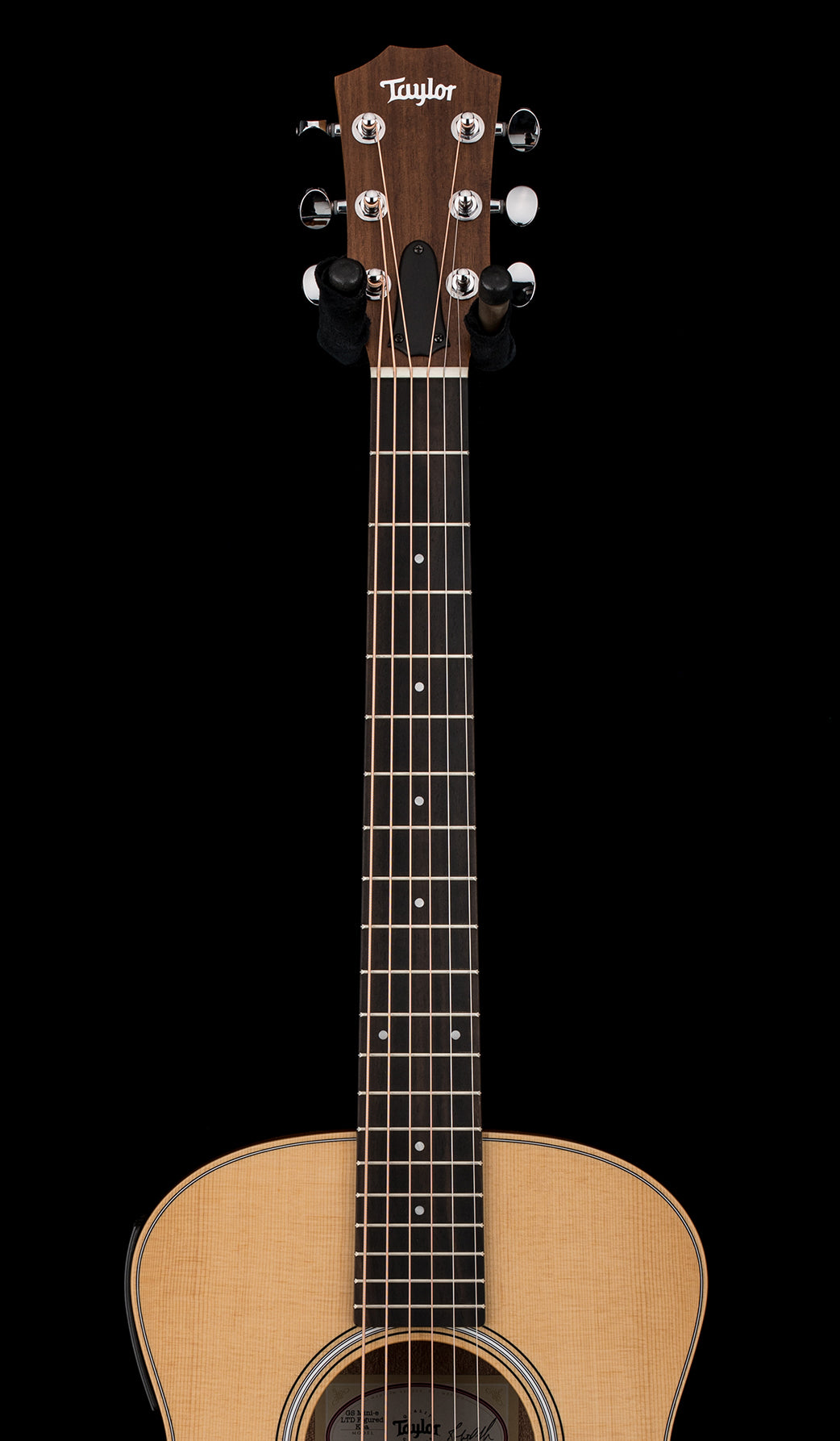 A solid torrefied spruce top yields a balanced, dynamic tone profile with plenty of projection. The special roasting process for the soundboard enhances resonance while contributing played-in warmth and sweetness you’d expect to hear from older guitars. A slim Taylor neck profile and low action ensure a smooth, comfortable playing experience with relaxed fretting. Other notables include Italian acrylic fretboard dot inlays, chrome tuning machines and an ES-B pickup with a built-in digital tuner.