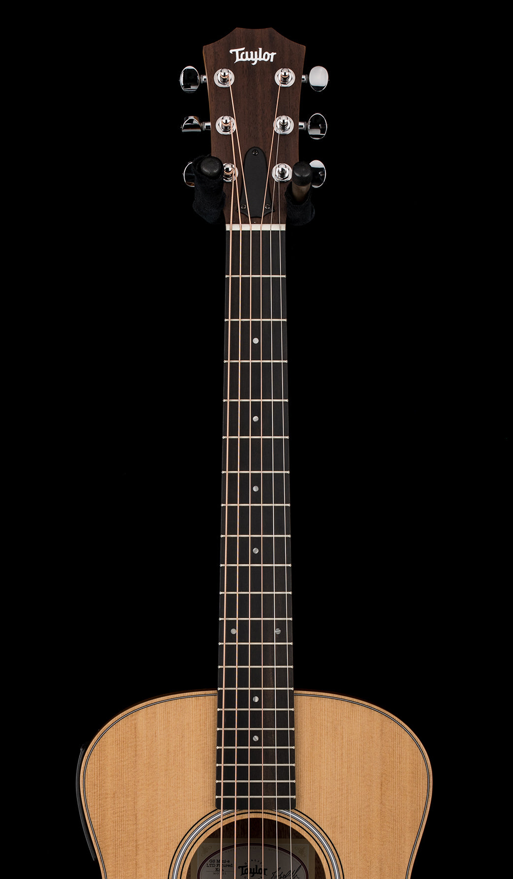 A solid torrefied spruce top yields a balanced, dynamic tone profile with plenty of projection. The special roasting process for the soundboard enhances resonance while contributing played-in warmth and sweetness you’d expect to hear from older guitars. A slim Taylor neck profile and low action ensure a smooth, comfortable playing experience with relaxed fretting. Other notables include Italian acrylic fretboard dot inlays, chrome tuning machines and an ES-B pickup with a built-in digital tuner.