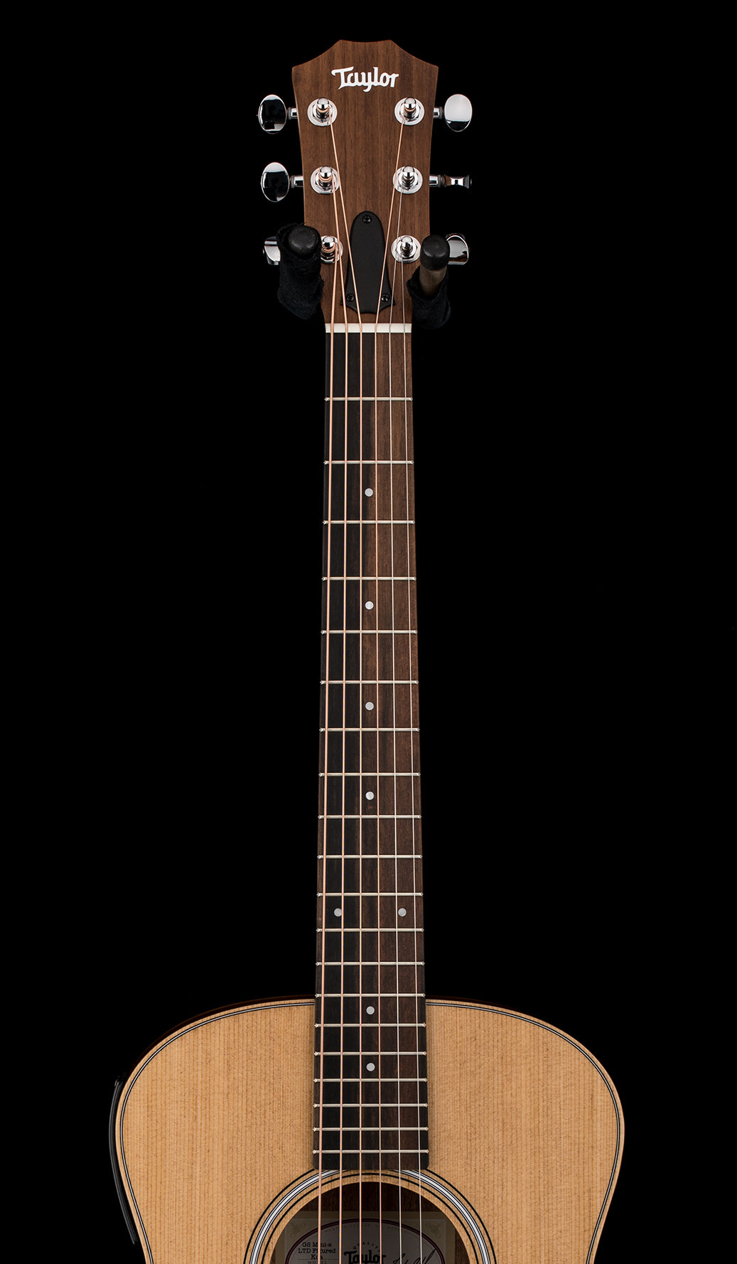 A solid torrefied spruce top yields a balanced, dynamic tone profile with plenty of projection. The special roasting process for the soundboard enhances resonance while contributing played-in warmth and sweetness you’d expect to hear from older guitars. A slim Taylor neck profile and low action ensure a smooth, comfortable playing experience with relaxed fretting. Other notables include Italian acrylic fretboard dot inlays, chrome tuning machines and an ES-B pickup with a built-in digital tuner.