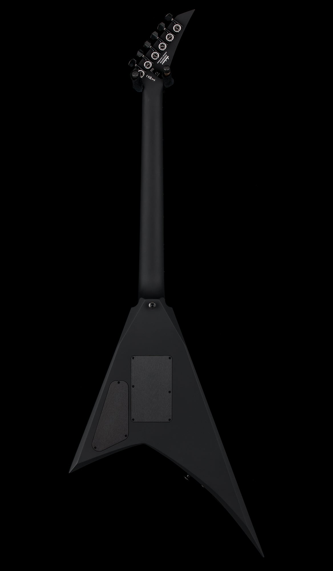 The RR24's offset Rhoads alder body turns heads with its sleek, weapon-like contours while providing resonant, lively tone. Its neck-through-body three-piece maple neck with graphite reinforcement delivers supreme stability and sustain. 24 Jumbo stainless-steel frets top the 12"-16" compound radius ebony fingerboard allowing effortless bending across the entire fretboard.