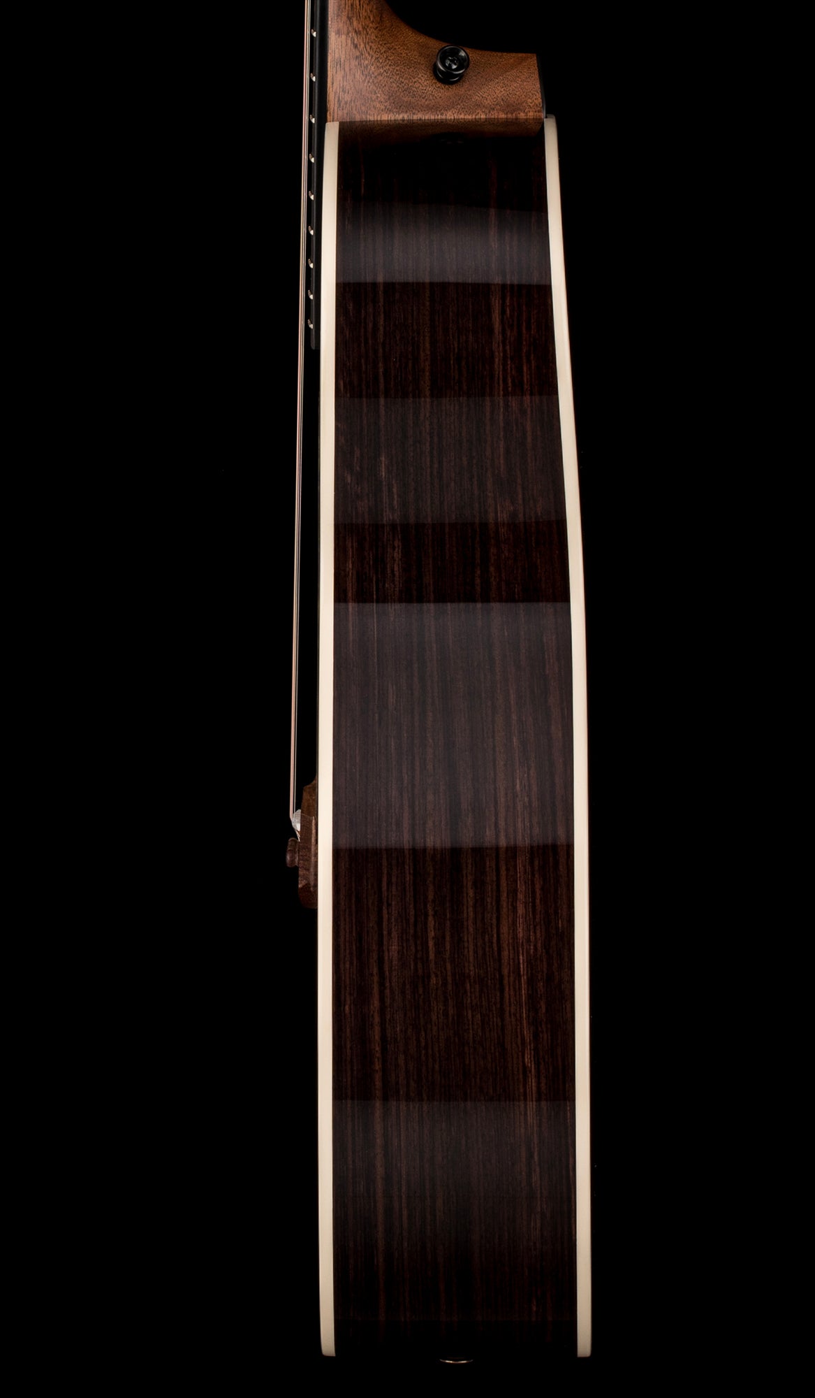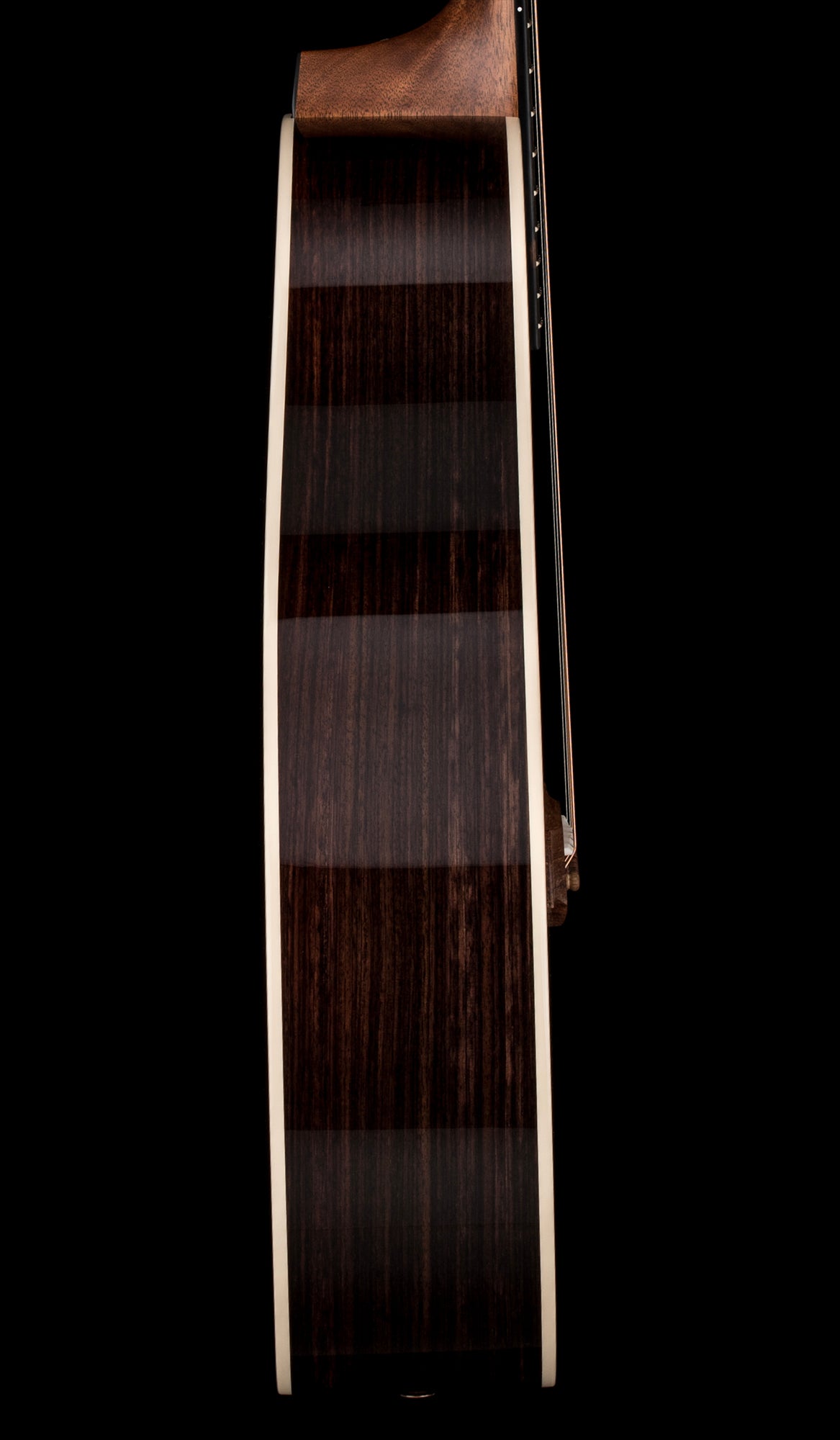 Fanned V-Class® Bracing: Featuring a fan-like arrangement of braces in the soundboard’s lower bout, this V-Class variant delivers on the original promise of Andy Powers’ innovative sonic engine: a flexible voicing platform capable of unlocking a bold new palette of sounds. In this case, it gives these Gold Label models a warmer, more resonant, more powerful sound.