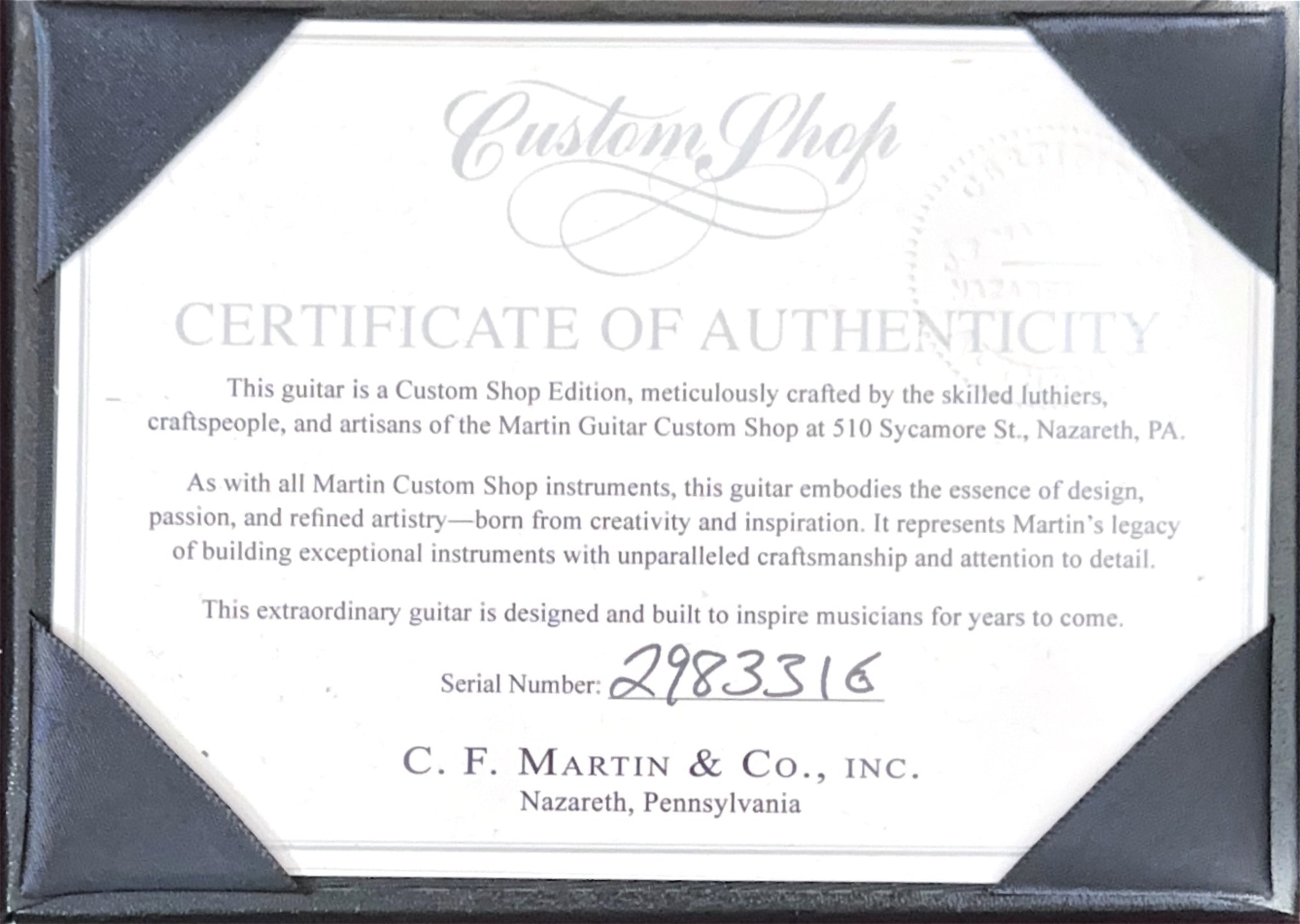 Have questions about this specific Custom Shop guitar? Our team is here to help. Contact us or call the shop directly to learn more about the details of this model, availability, and how we can help you find the perfect Martin for your collection.