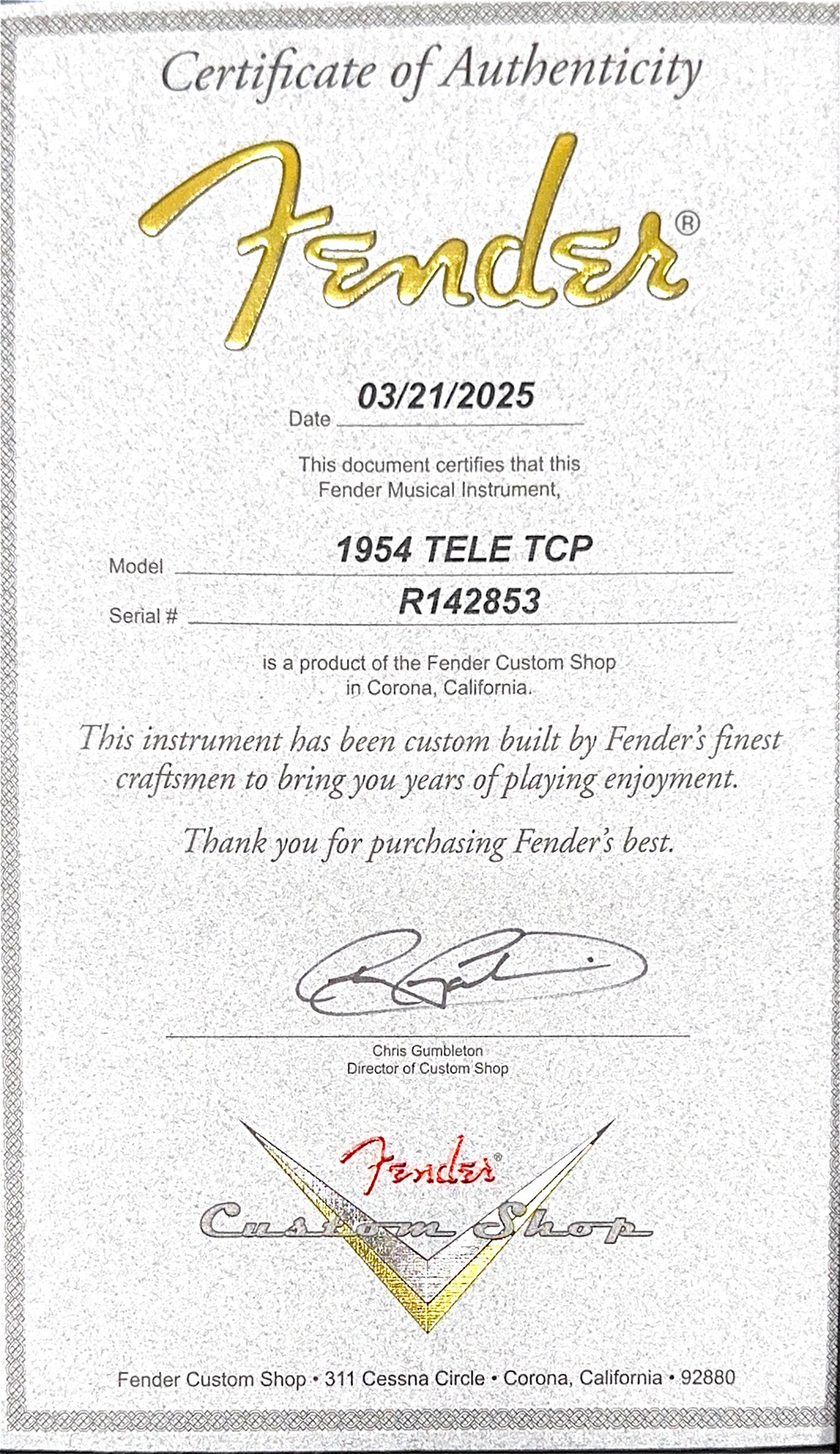 Our Custom Shop Authorized technicians complete a full professional factory-spec setup and inspection before shipping or in-store pickup, ensuring an extraordinary playing experience!