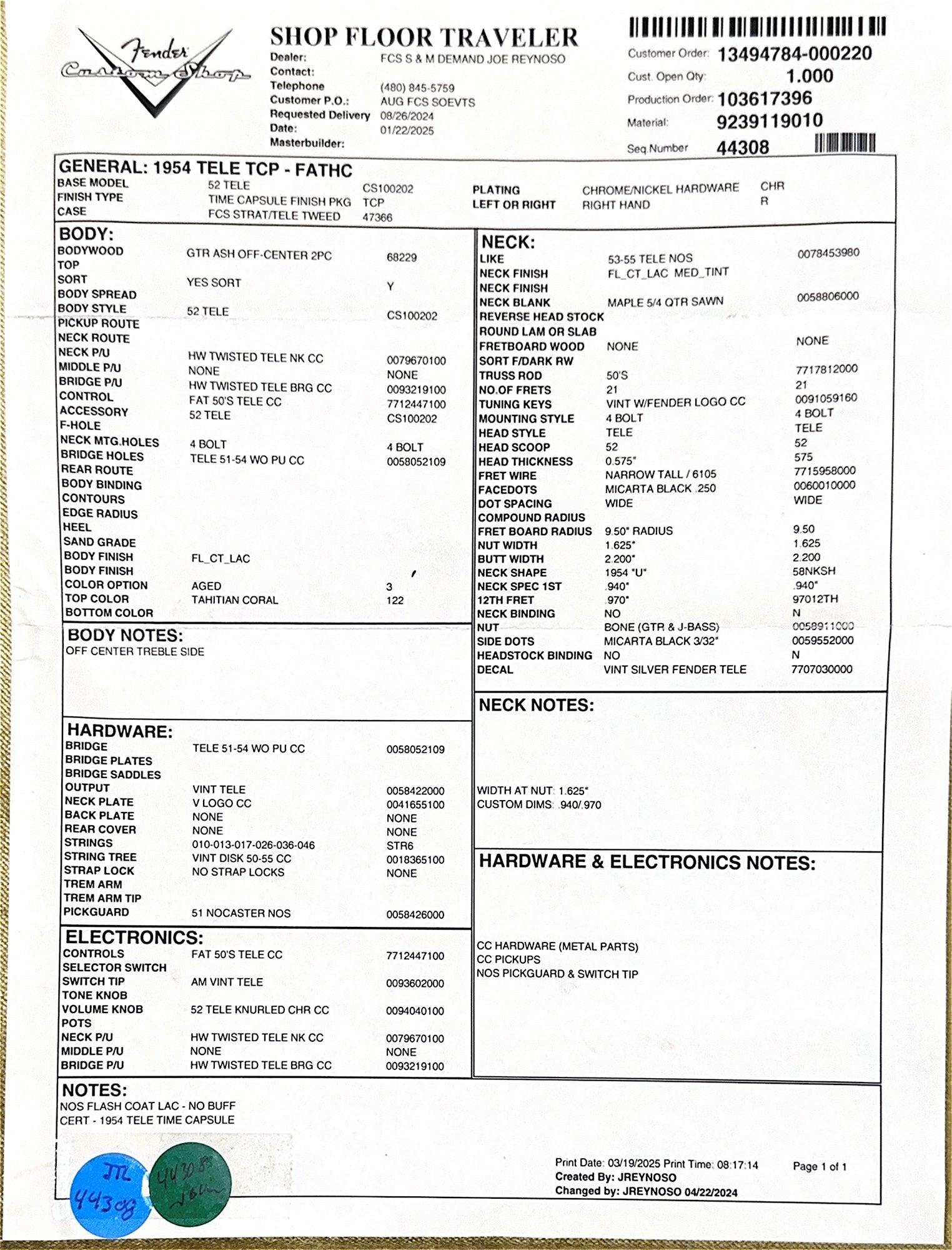 Fender Custom Shop 1954 Telecaster Time Capsule Package - Faded Aged Tahitian Coral #42853