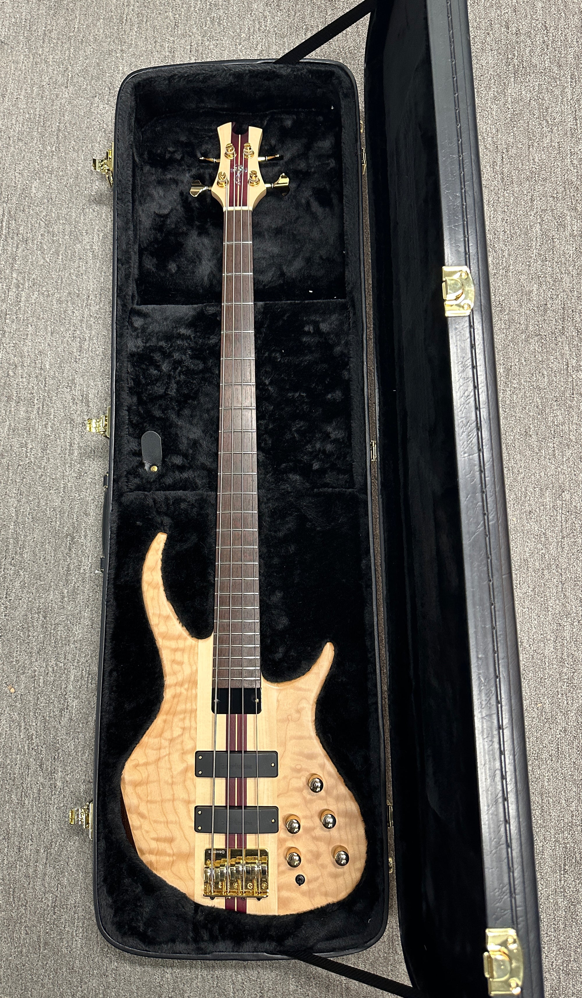 Reintroducing the Tobias Classic IV. Tobias basses deliver exceptional clarity in the low end, punchy, articulate midrange, and sweetness in the high frequencies. Uncompromising performance and tone are what the Tobias Classic IV is all about. Crafted from the finest tonewoods, the Classic IV features a 34" scale, 5-piece stringer neck through-body made from hard maple and purpleheart, and 3-layer body wings made from walnut, wenge, and capped with a highly figured quilted maple cap. The neck has a wenge fretboard and 24 jumbo frets, a bone nut, the easy-playing Tobias Asym™ profile, and is equipped with Gotoh® tuners. A Babicz® bridge ensures exceptional action and intonation adjustability. Two active Bartolini® humbucking pickups, an 18V preamp, and Volume, Bass, Mid, Treble, and Blend controls, along with a Mid Frequency switch, provide all the control you need to dial up your ideal bass tone.
