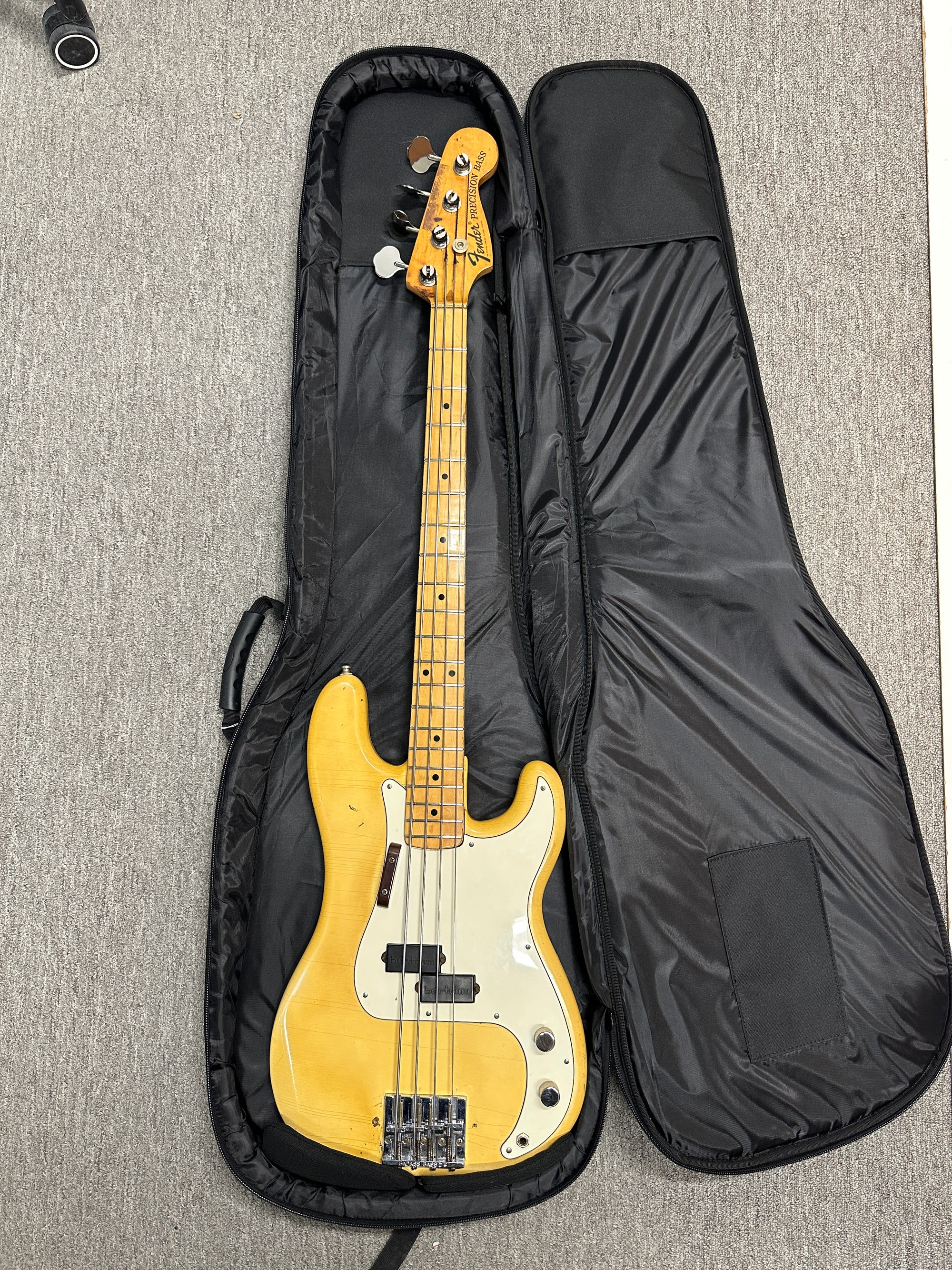 This '76 Precision Bass is currently strung with flatwound strings, comes with a Gator gig bag, and is in good playing condition ready for the studio or the stage.