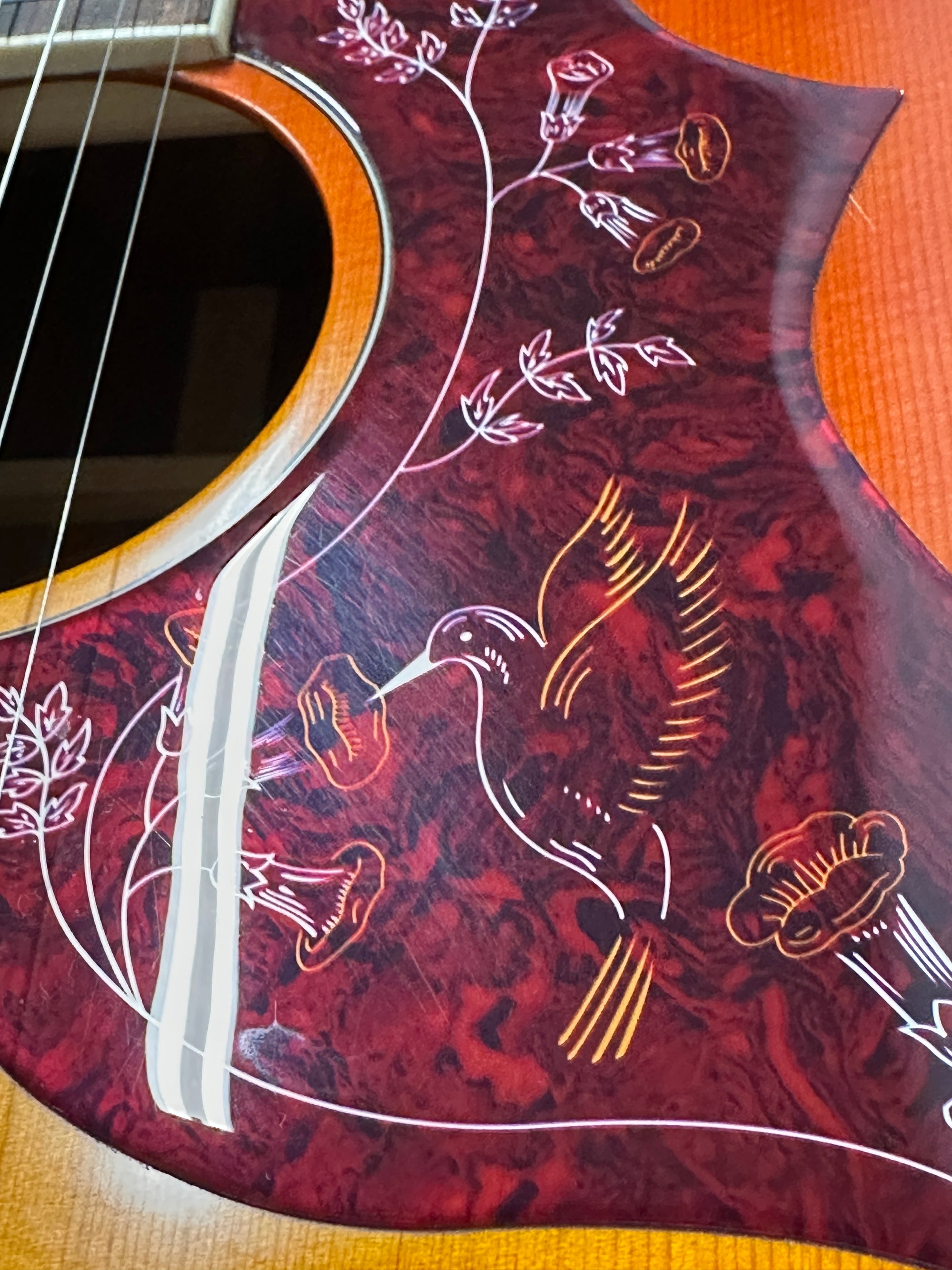 The Hummingbird™ is one of the most instantly-recognizable and remarkable acoustic guitars ever built. The new Epiphone Inspired by Gibson™ Hummingbird blends solid woods, vintage appointments, and a Fishman® Sonicore under-saddle pickup and Sonitone preamp. Outfitted with gold Epiphone Deluxe tuners, top and back multi-ply binding, Kalamazoo style headstock, and a bone nut and saddle.
