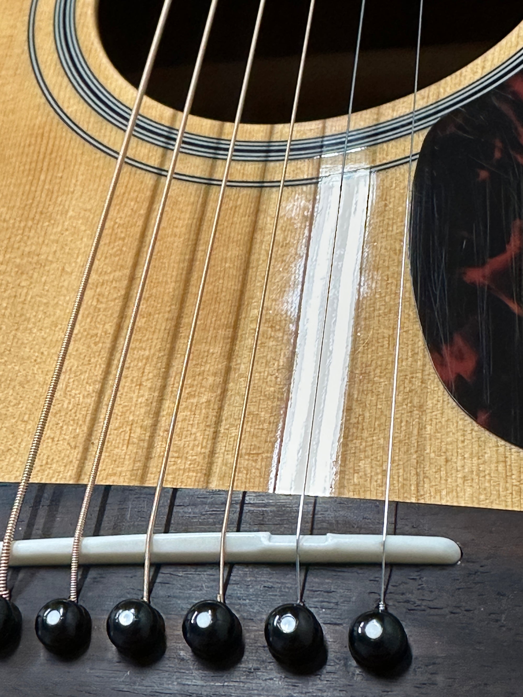 Yamaha's standard acoustic model with simple, traditional looks and outstanding quality at an affordable price. A solid-top guitar with authentic sound that is well-balanced without sacrificing its robust strength, thanks to the newly developed scalloped bracing design. Can be confidently recommended to all beginner guitarists.