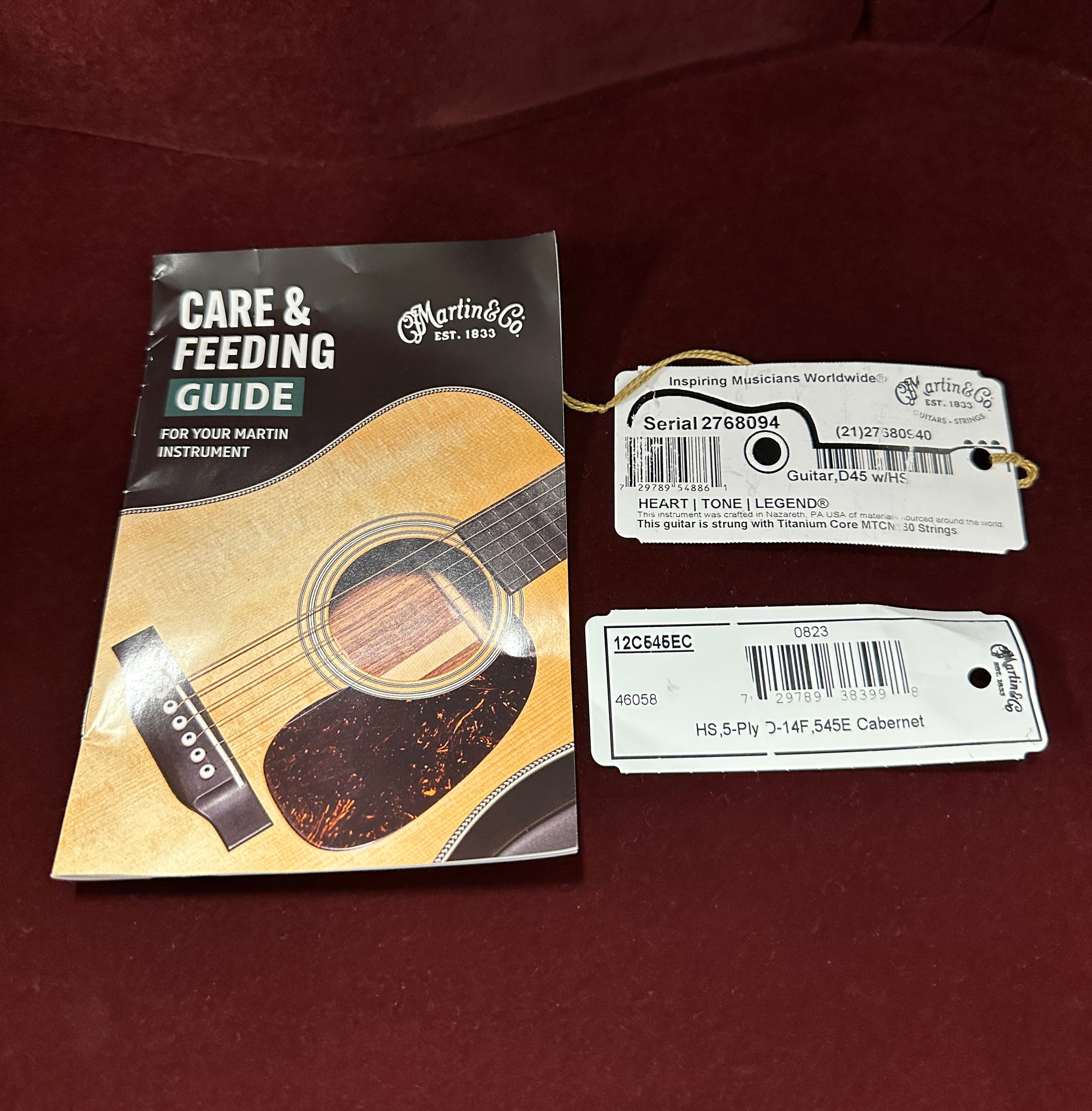 This Martin D-45 is in VERY GOOD overall condition. Cosmetically, it is in very good shape but does show wear/blemishes in places. This is a used instrument, so it will have finish scratching and playwear. Any significant marks will be mentioned in the description. All used models receive a full factory setup and hand-inspection before shipping.
