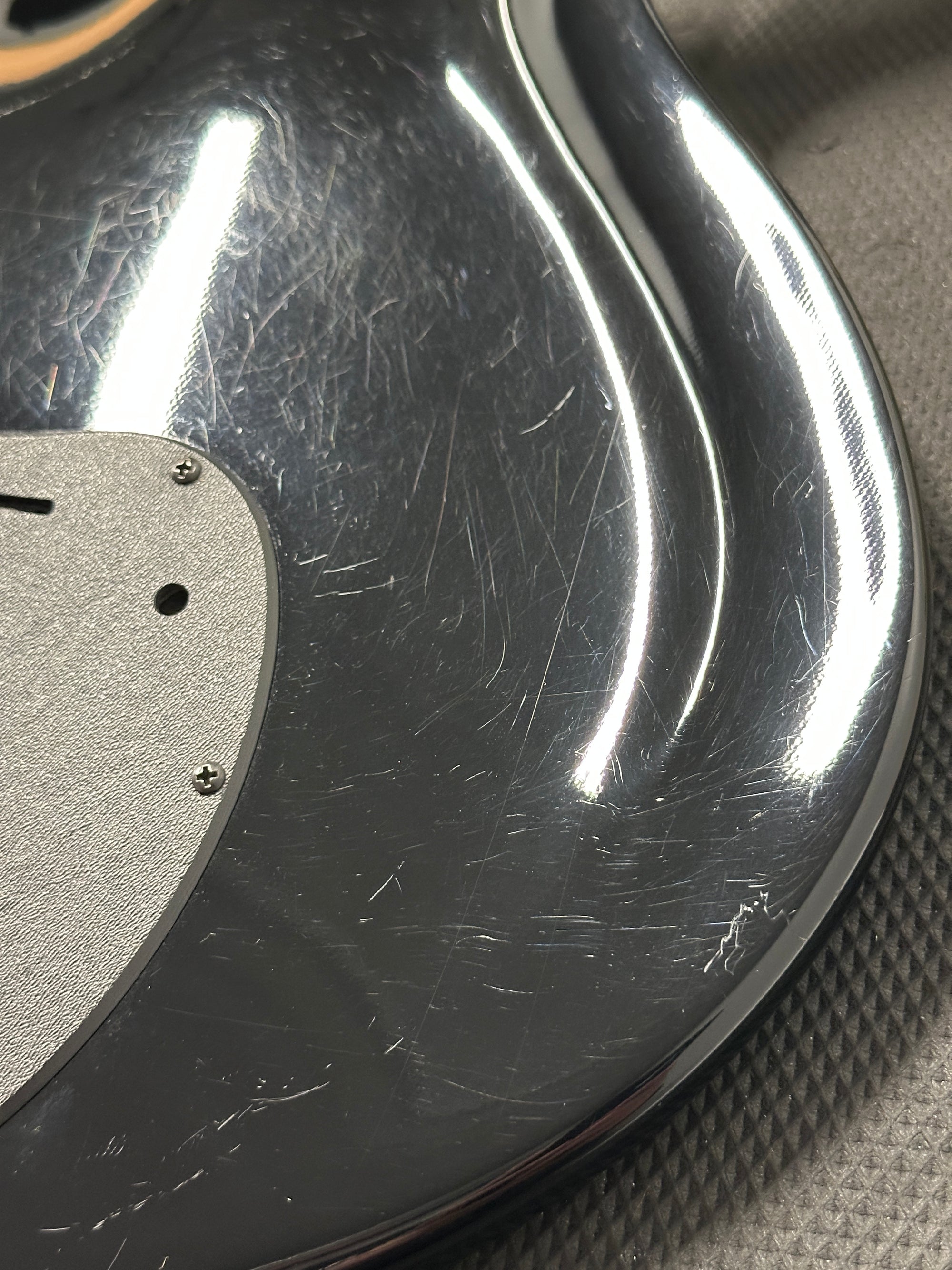 Note: After close inspection, this instrument has heavy scratching, scuffs, impressions/chips, and finish wear throughout. (See pics, light reflections used to show wear)