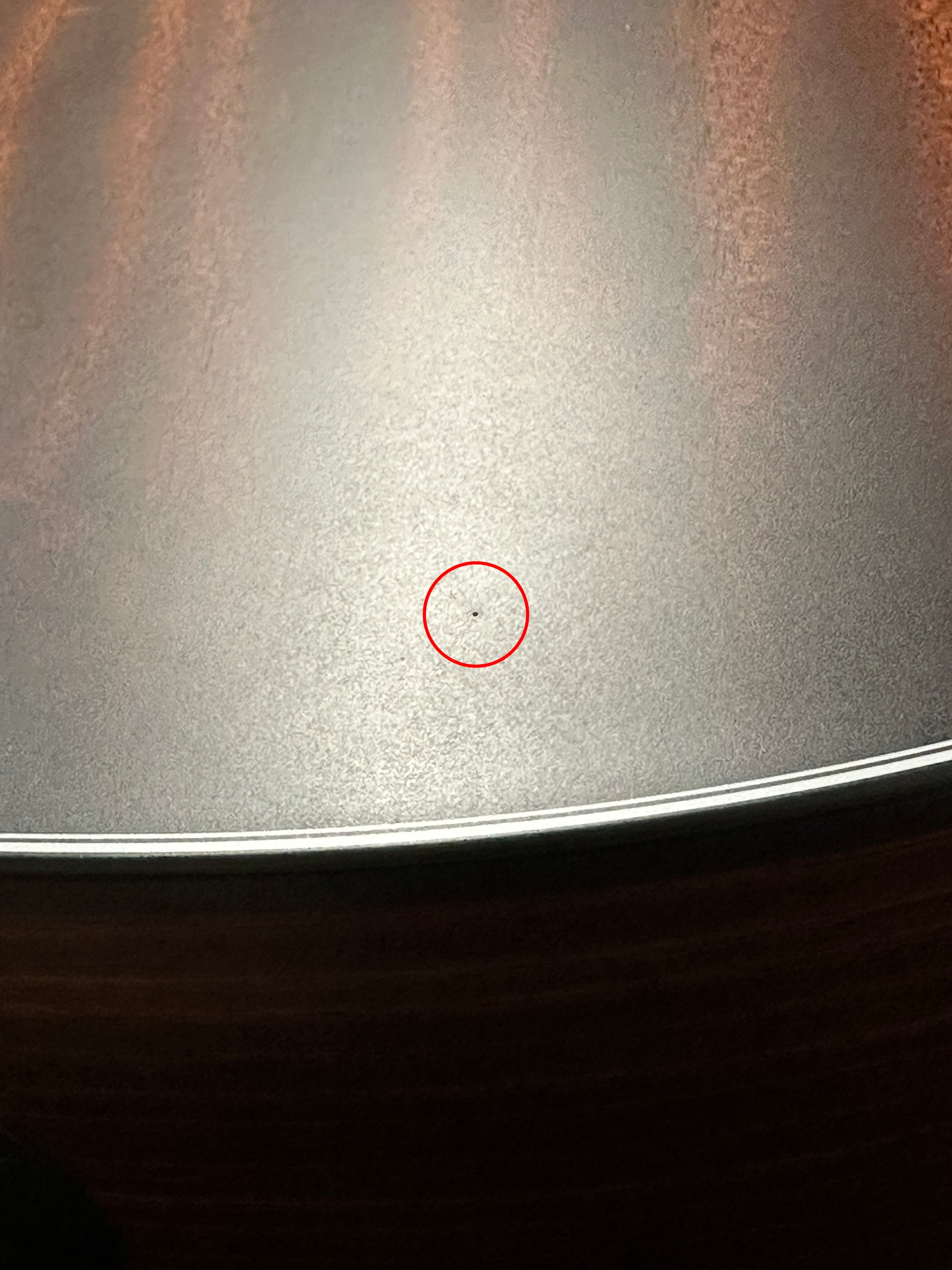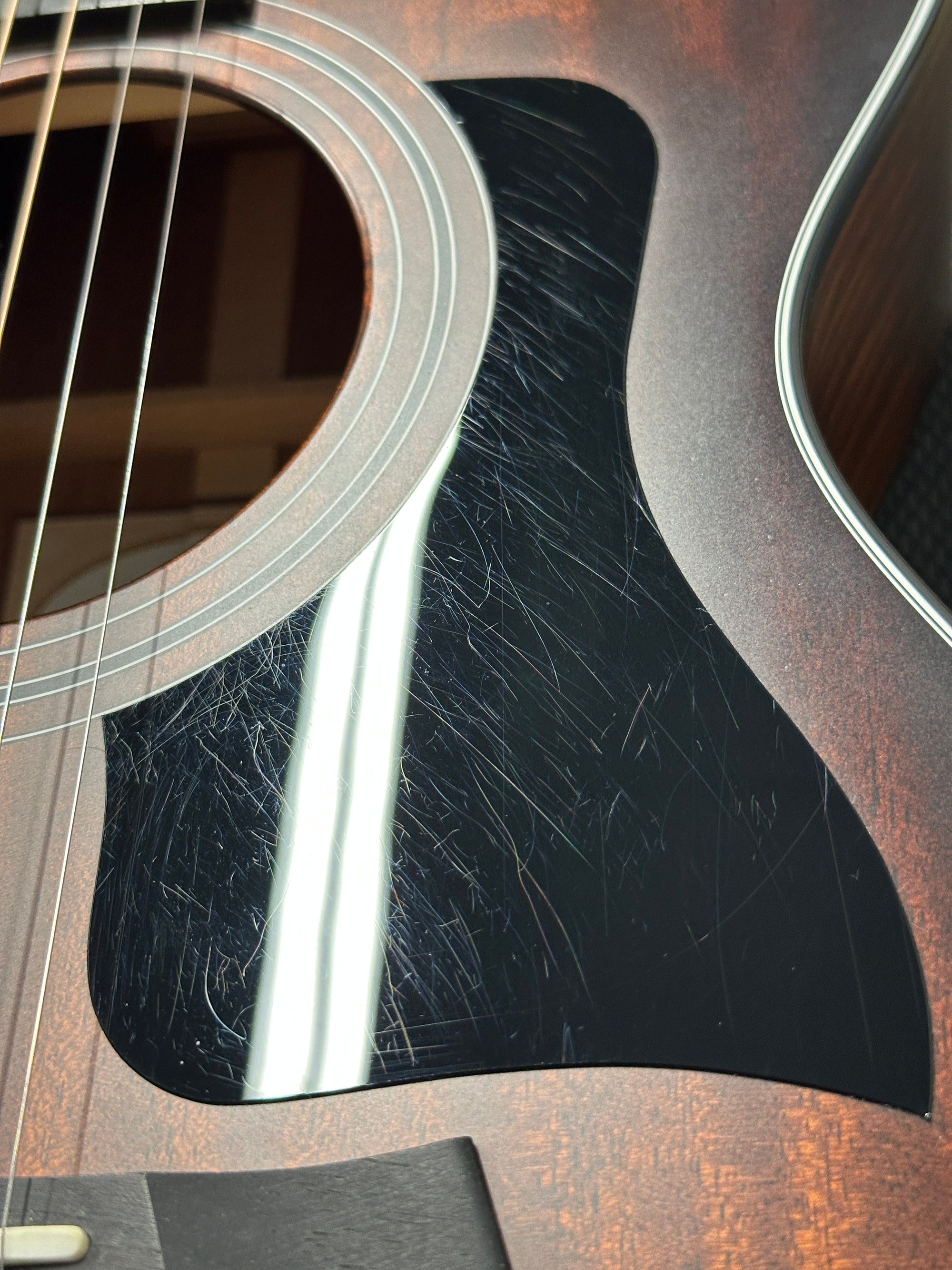 Note: After close inspection, this instrument is free of any major wear, marks and/or blemishes. Has two small impressions, scratching on the pickguard, and minor finish wear/marks. (See pics)