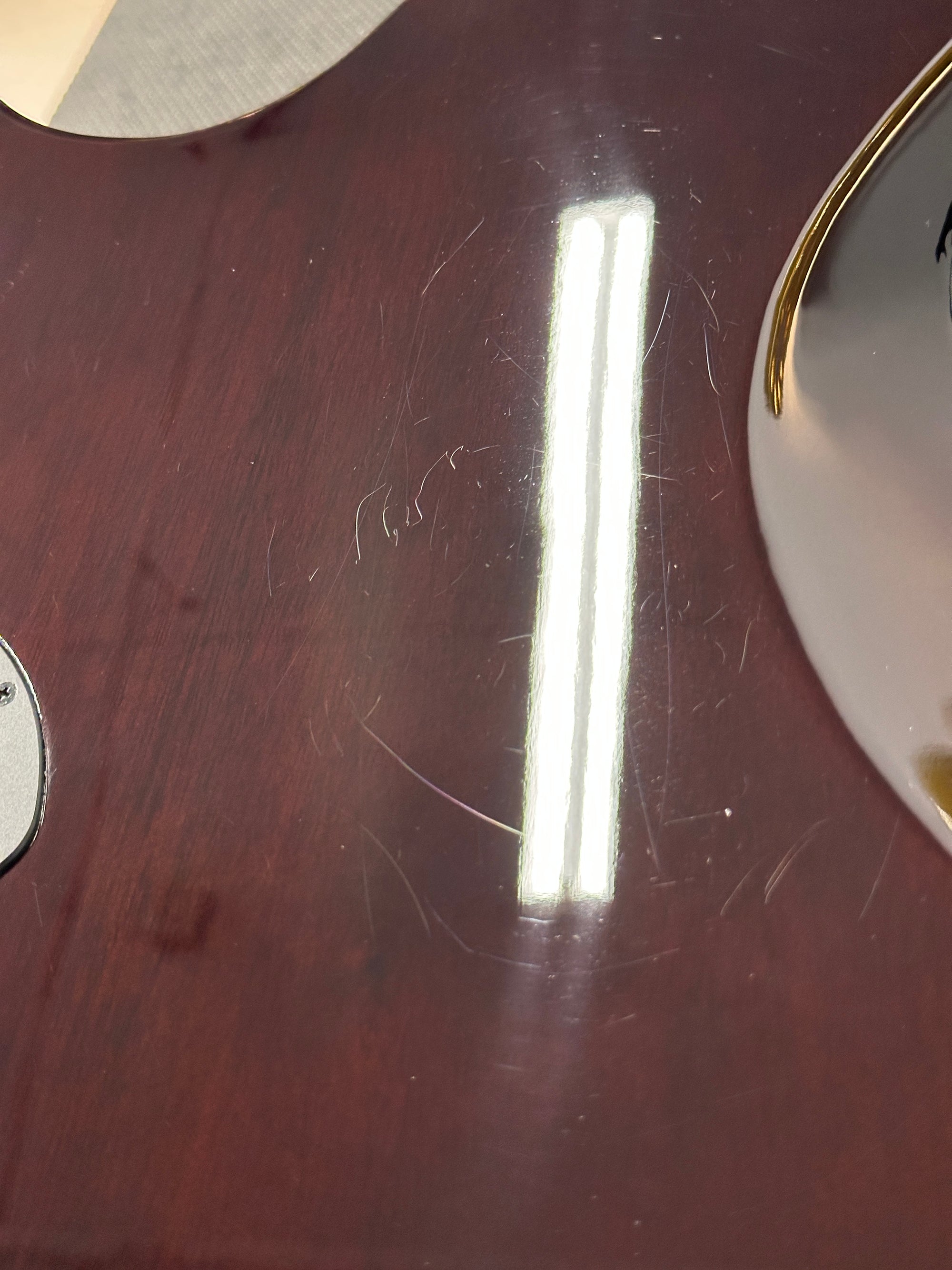 Note: After close inspection, this instrument has scratching throughout and a finish blemish on the back of the headstock. (See pics, light reflections used to show wear)