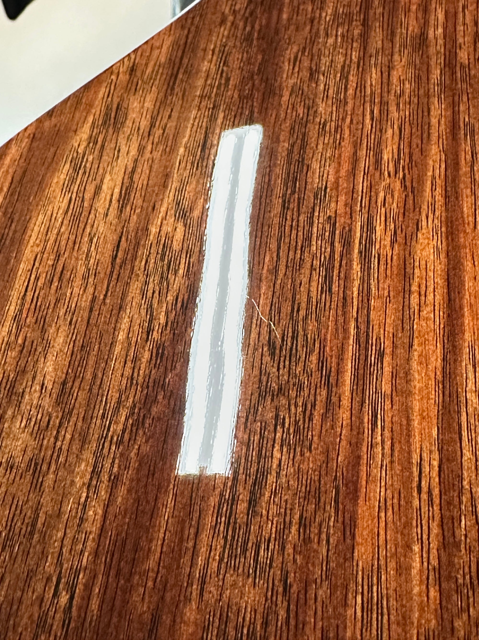 Note: After close inspection, this instrument impressions, scratching, and discoloration around the neck heel. (See pics, light reflection used to show wear)