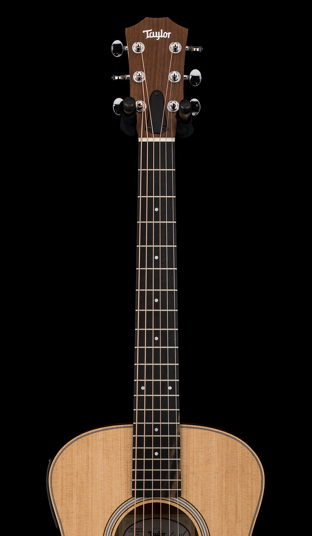 A solid torrefied spruce top yields a balanced, dynamic tone profile with plenty of projection. The special roasting process for the soundboard enhances resonance while contributing played-in warmth and sweetness you’d expect to hear from older guitars. A slim Taylor neck profile and low action ensure a smooth, comfortable playing experience with relaxed fretting. Other notables include Italian acrylic fretboard dot inlays, chrome tuning machines and an ES-B pickup with a built-in digital tuner.