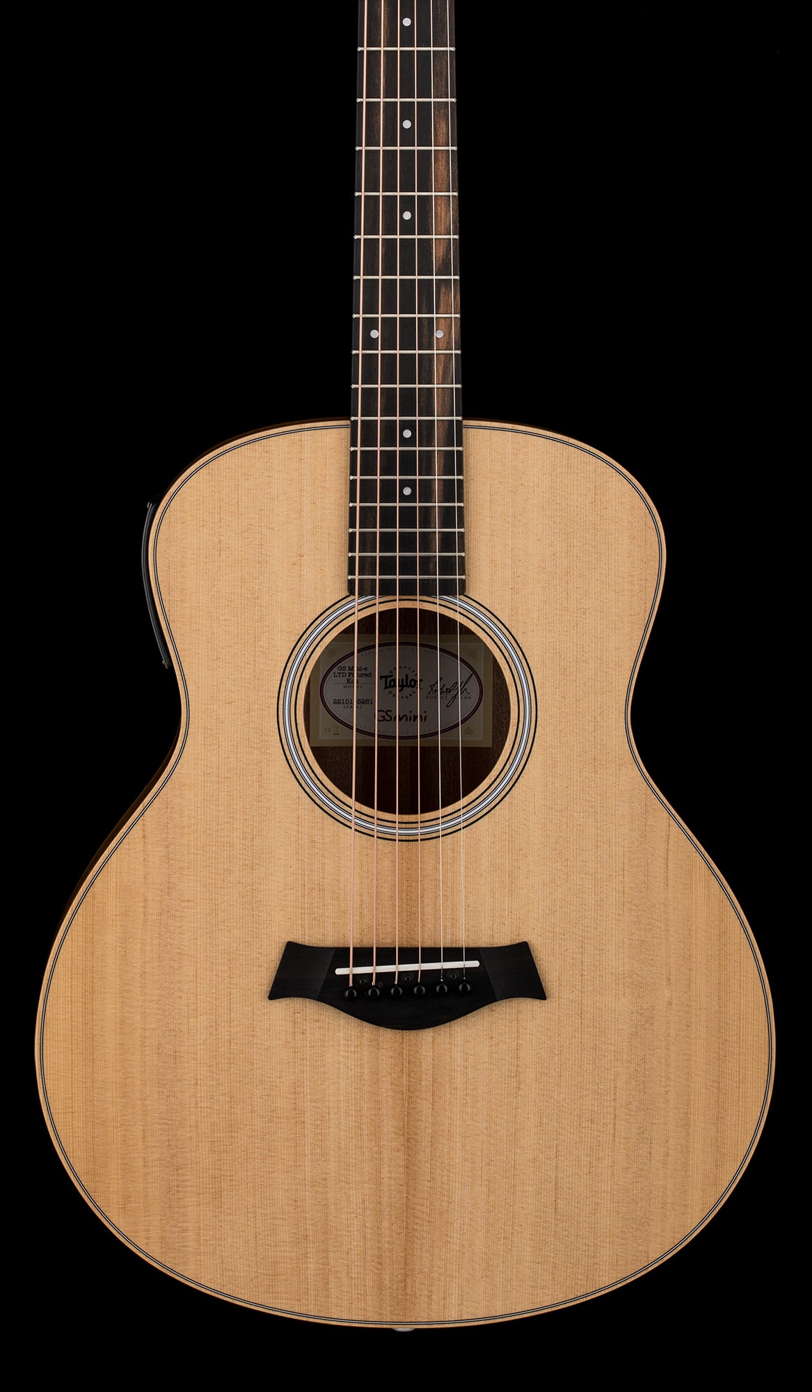 A solid torrefied spruce top yields a balanced, dynamic tone profile with plenty of projection. The special roasting process for the soundboard enhances resonance while contributing played-in warmth and sweetness you’d expect to hear from older guitars. A slim Taylor neck profile and low action ensure a smooth, comfortable playing experience with relaxed fretting. Other notables include Italian acrylic fretboard dot inlays, chrome tuning machines and an ES-B pickup with a built-in digital tuner.