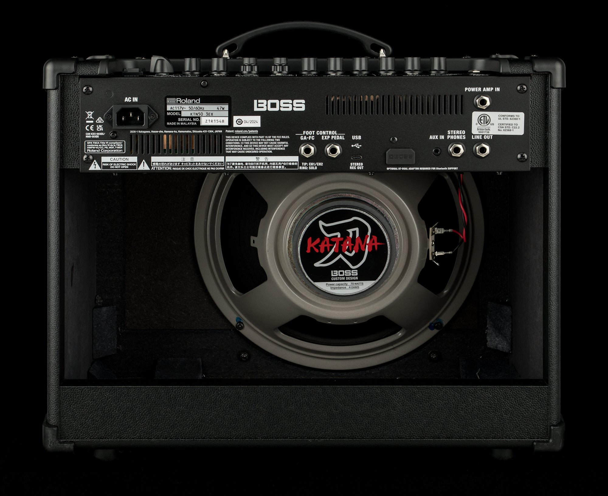 The Katana-50 EX Gen 3 model extends the core features of the Katana-50 Gen 3 with enhancements for live performers. Additions include an upgraded speaker, Line Out and Stereo Expand functions, and GA-FC/GA-FC EX Foot Controller support.