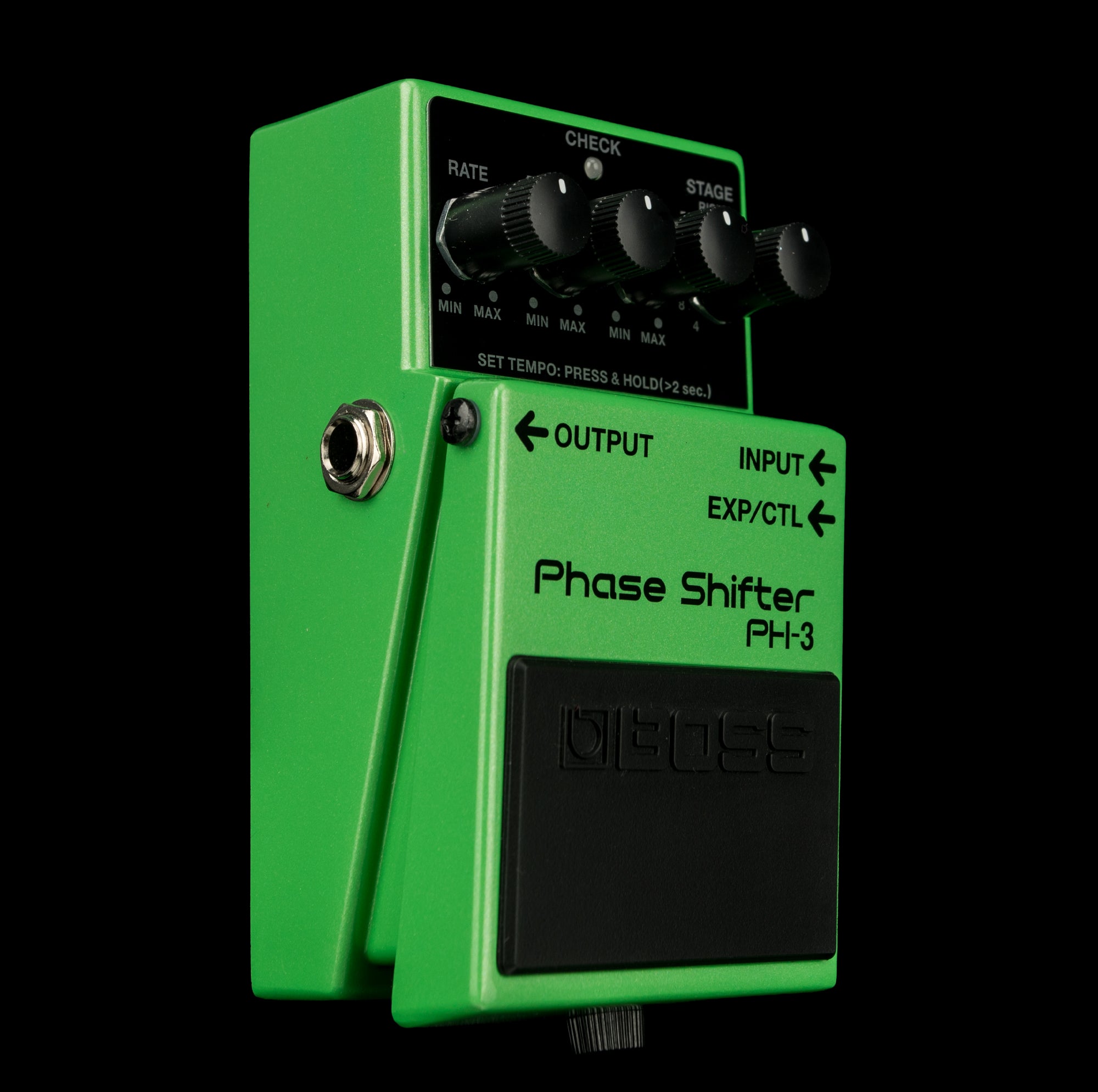 The BOSS PH-3 Phase Shifter pedal provides a wealth of vintage and modern phasing effects, including new "Rise" and "Fall" modes for unique, unidirectional phasing. Syncing these phasing effects is as simple as tapping the pedal to the desired tempo, while an optional expression pedal provides realtime control of the PH-3's Rate, Filter and Tempo.