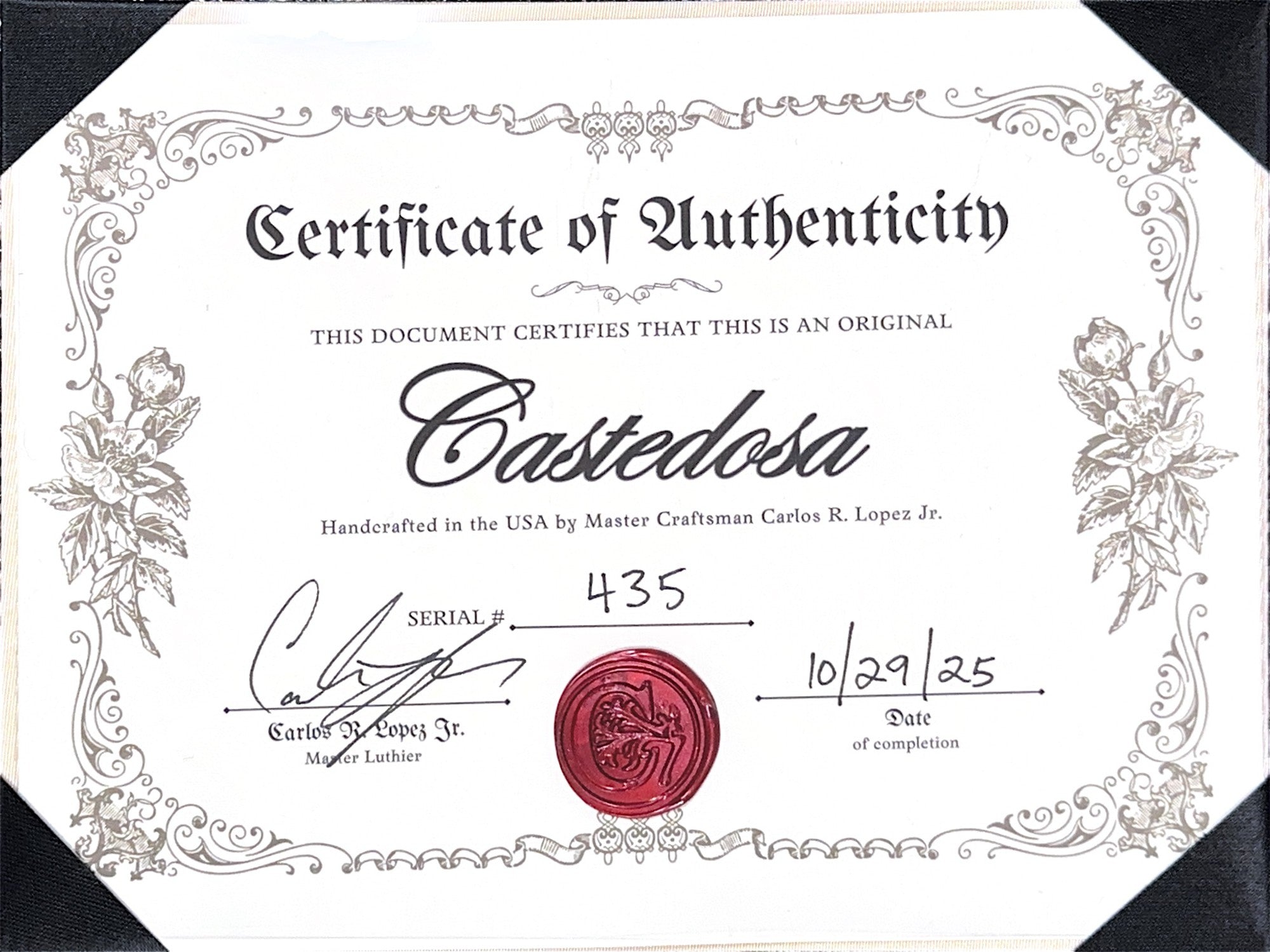 The bass pictured is the actual guitar that you will receive. It comes with Castedosa's Factory Warranty and our 100% satisfaction guarantee! It will be professionally set up and ready to play before it leaves our store.