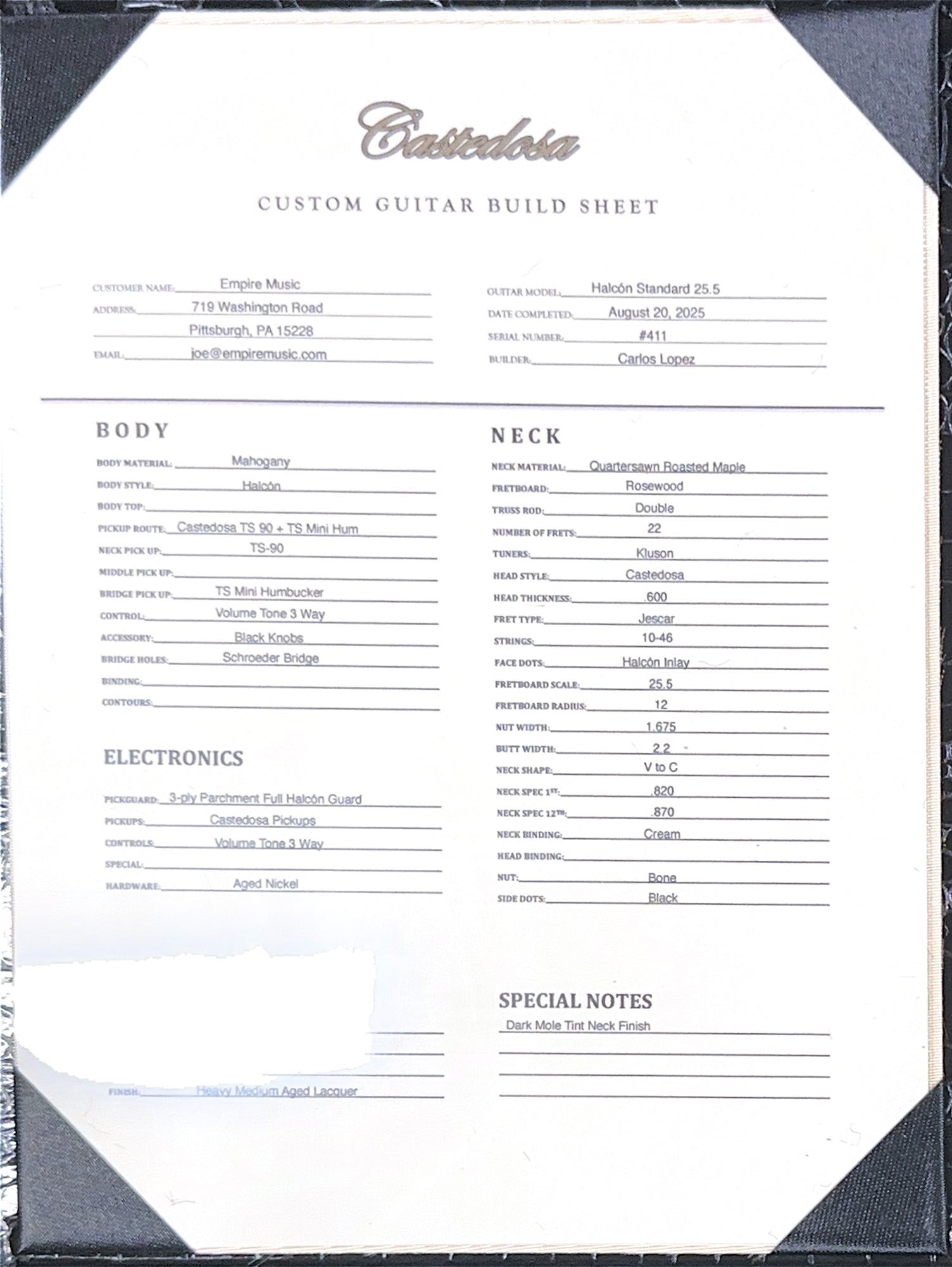 With meticulous attention to detail and quality materials, this model is a testament to Castedosa's commitment to innovation and continued evolvement, offering a guitar that's not only visually striking but also resonant and appealing for every musician.