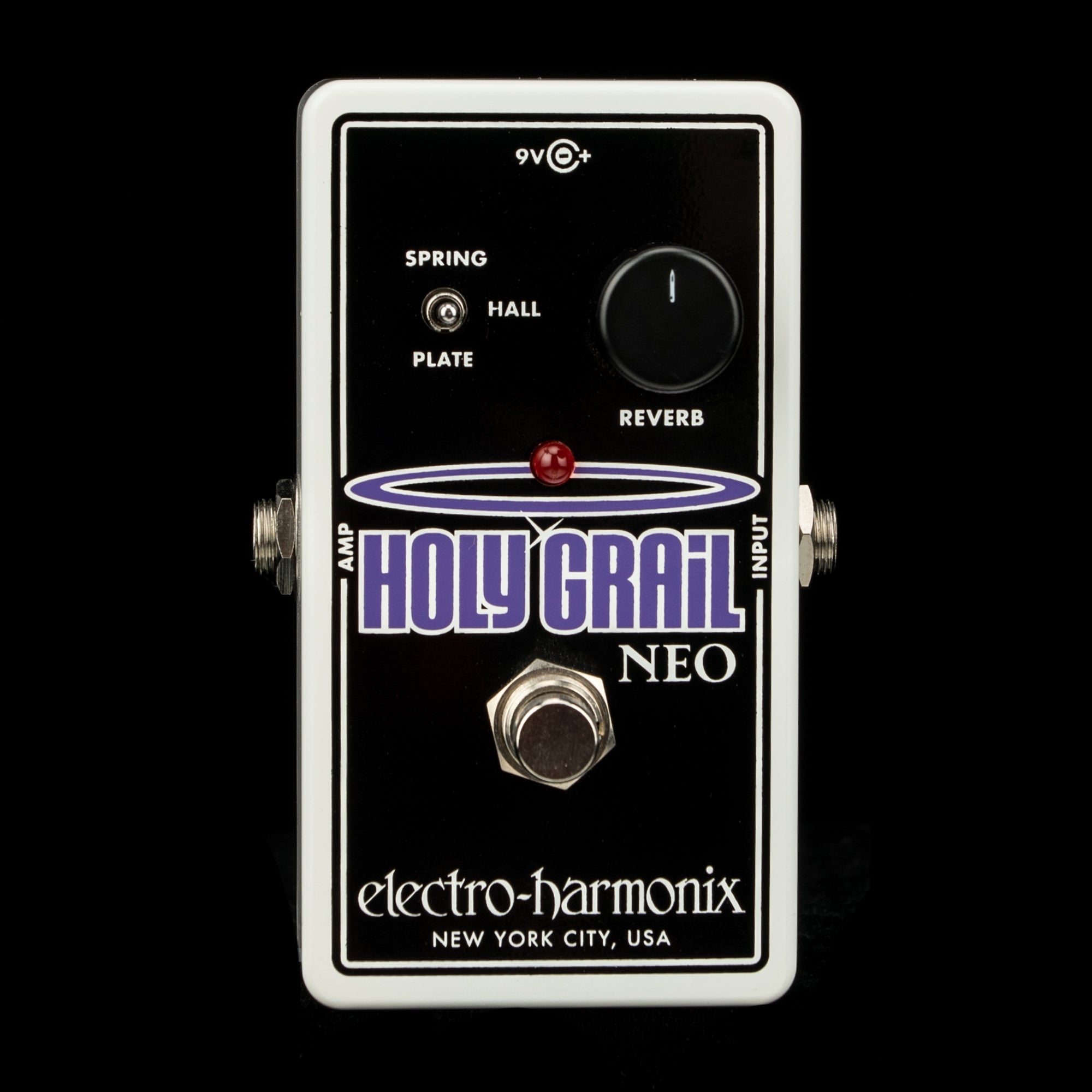 The EHX Neo Holy Grail is an update to Electro-Harmonix's wildly popular compact digital reverb, the Holy Grail. It contains three reverb algorithms: SPRING, HALL, and PLATE. All three algorithms were designed and tailored for the electric guitar, but they work equally well on most instruments and voices.
