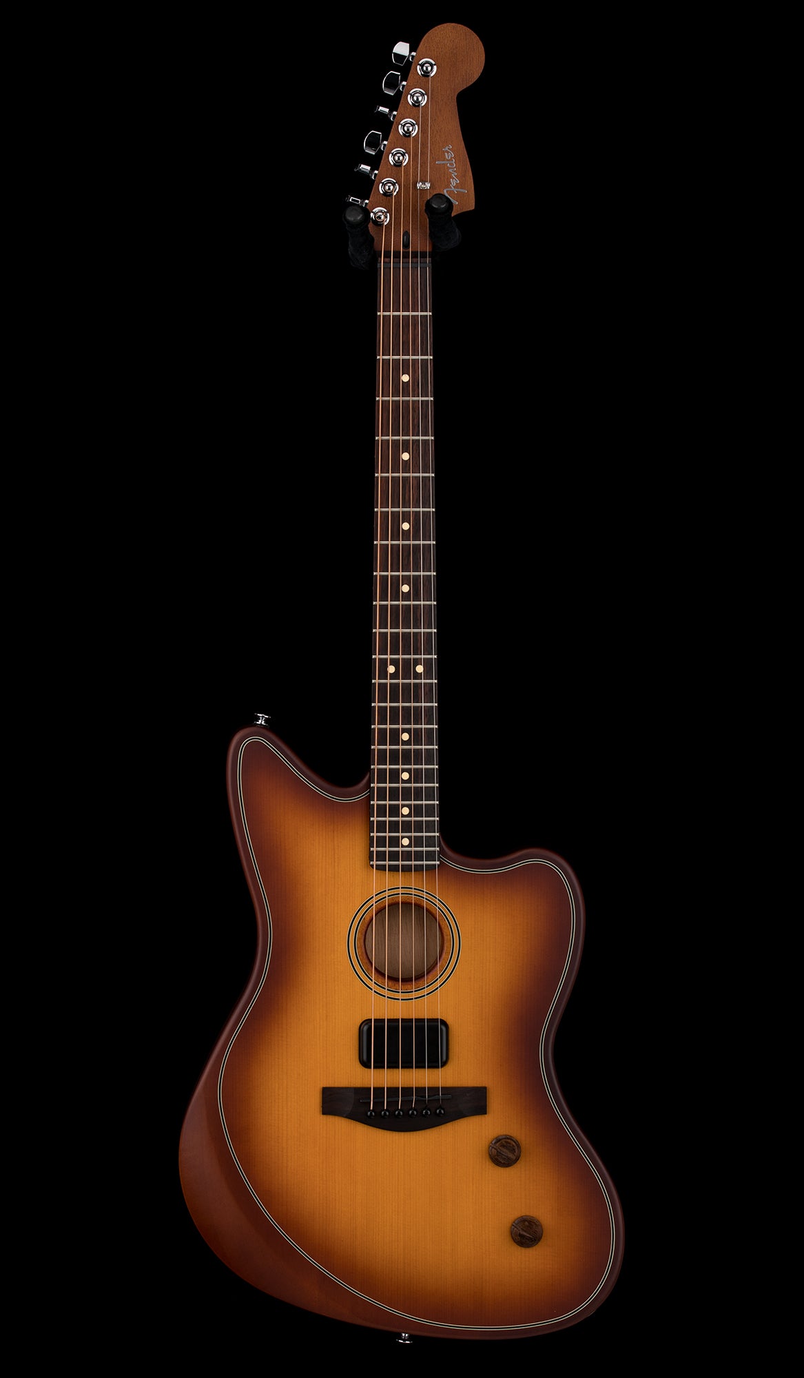 The dual personality of the Acoustasonic Standard Jazzmaster® equips players with a versatile spectrum of acoustic and electric tones in a single creative tool. With a braced solid Sitka spruce top, fully chambered body, inventive Fender and Fishman®-designed analog electronics with volume and blend control, and the familiar playing feel of a Fender icon, this Jazzmaster® truly sets the standard for the Acoustasonic experience.