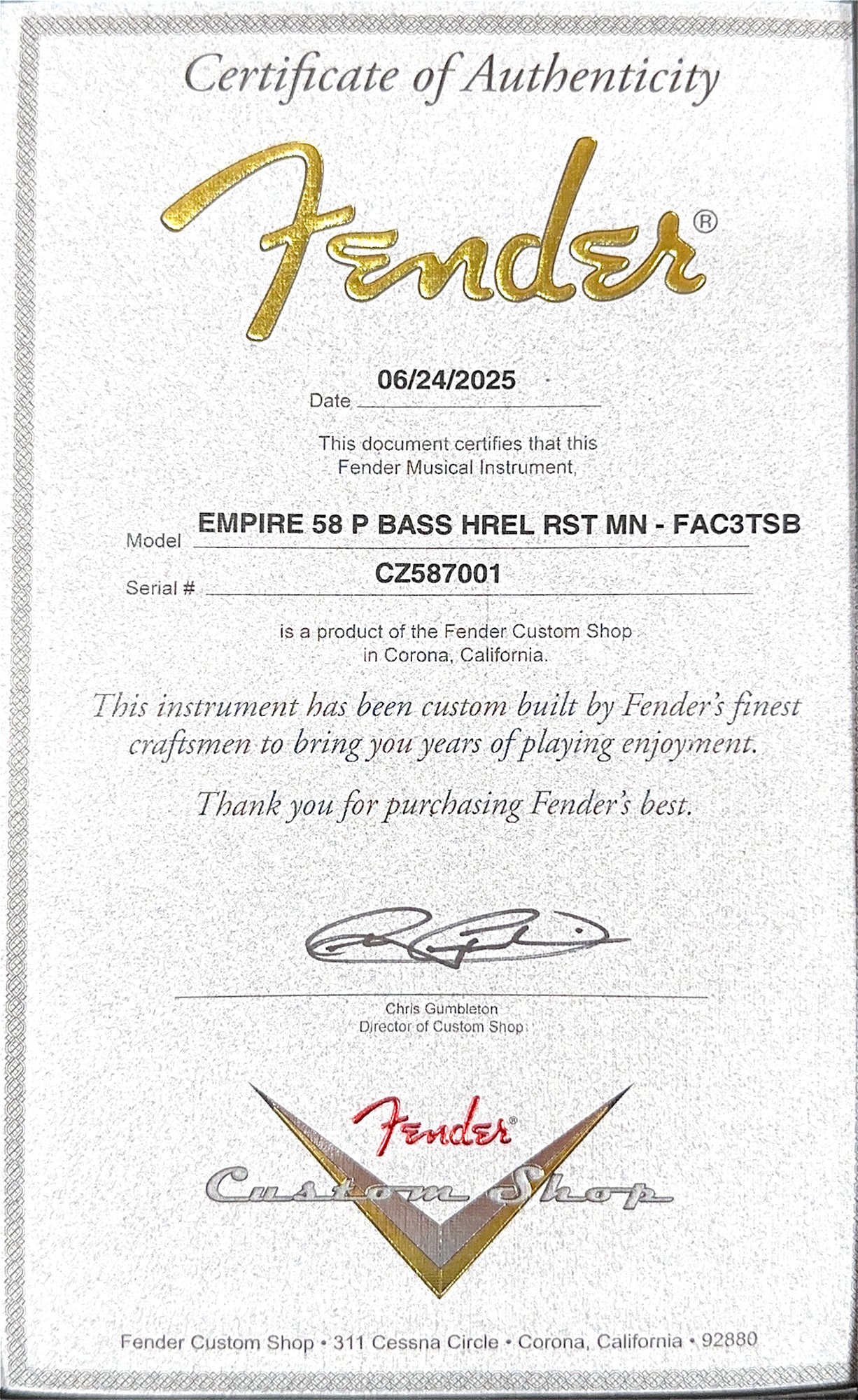 The Fender Custom Shop Empire 58 Precision Bass was designed in-house by our resident bassist and Director of Sales, Anthony Pecora. Based off of his very own 58 Custom Shop P with a few nods to the 60’s models, this bass takes the best from both eras into a player-centric package.