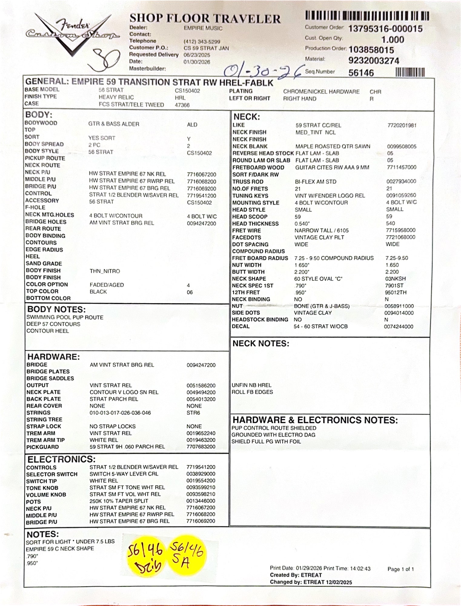 “For over 25 years, the Strat has been my go-to. The look, sound, and versatility of the Stratocaster, and the iconic heroes who play them, has been at the foundation of my experience as a musician. The Empire ‘59 Transition Strat draws on everything I love about the most expressive guitars ever made. Players will appreciate the familiar played-in neck and body feel, and the maturity and sweetness of our hand wound ‘59 pickups. These Strats are among the best I’ve played, and are a tribute to the deep connection between the Fender Stratocaster and the musicians who play them” - Justin, Empire Music