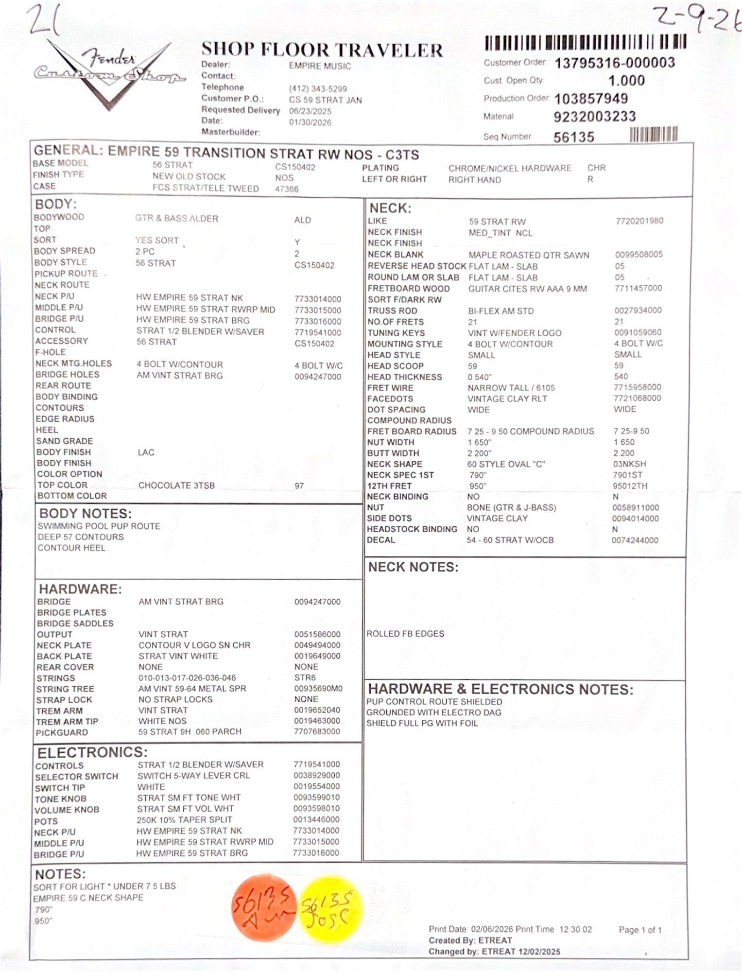 Fender Custom Shop Empire 59 Transition Stratocaster NOS, AAA Rosewood Fingerboard, Chocolate 3-Tone Sunburst