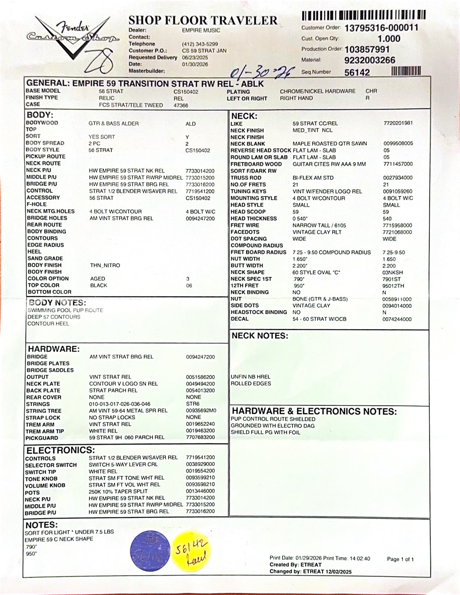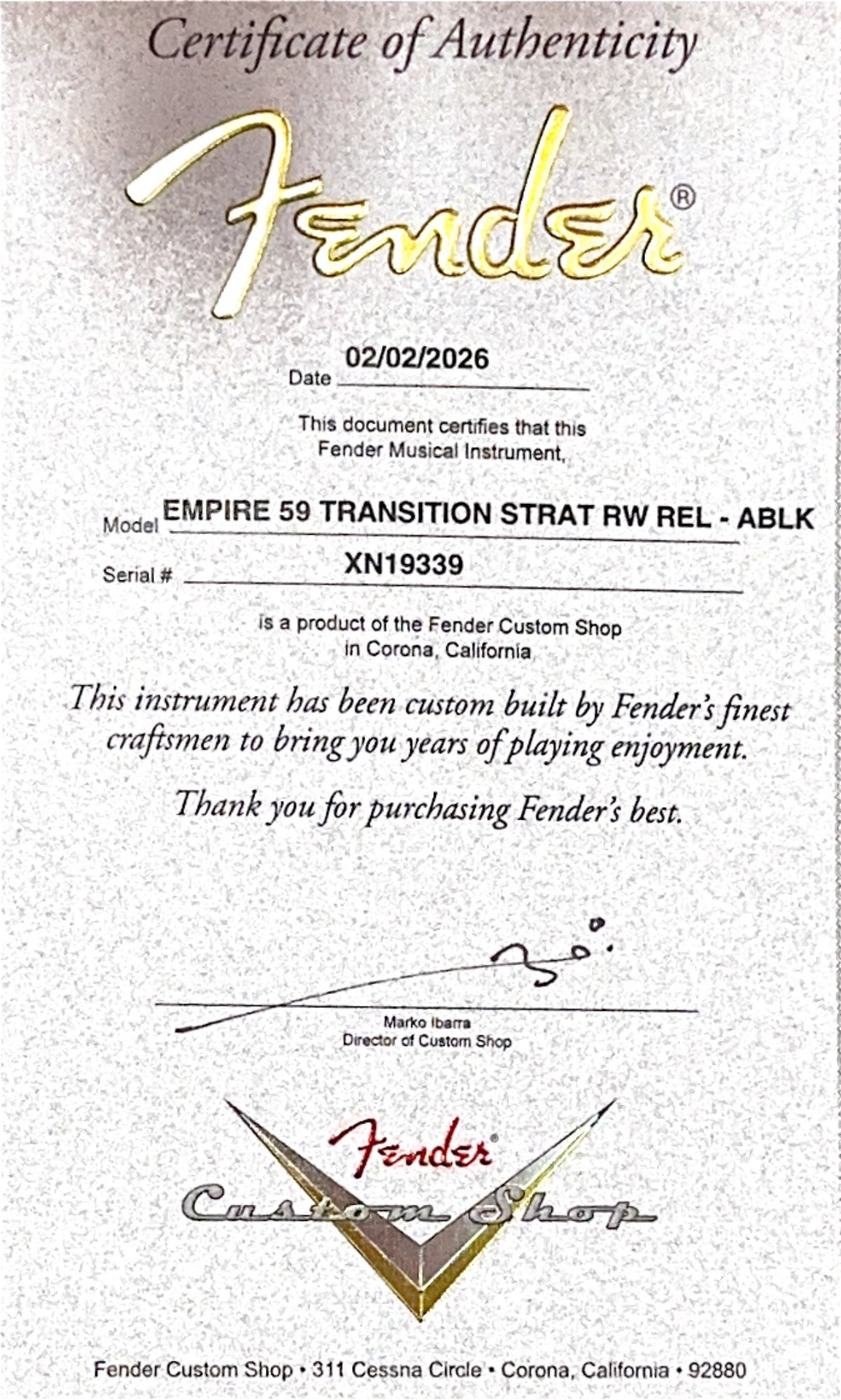 “For over 25 years, the Strat has been my go-to. The look, sound, and versatility of the Stratocaster, and the iconic heroes who play them, has been at the foundation of my experience as a musician. The Empire ‘59 Transition Strat draws on everything I love about the most expressive guitars ever made. Players will appreciate the familiar played-in neck and body feel, and the maturity and sweetness of our hand wound ‘59 pickups. These Strats are among the best I’ve played, and are a tribute to the deep connection between the Fender Stratocaster and the musicians who play them” - Justin, Empire Music
