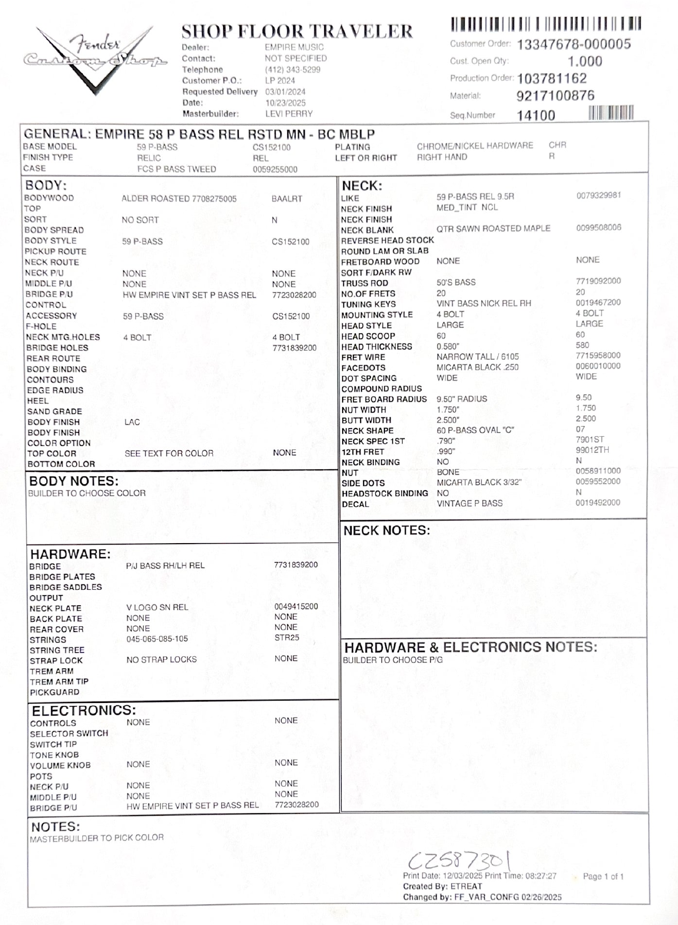 The Fender Custom Shop Empire 58 Precision Bass was designed in-house by our resident bassist and Director of Sales, Anthony Pecora. Based off of his very own 58 Custom Shop P with a few nods to the 60’s models, this bass takes the best from both eras into a player-centric package.