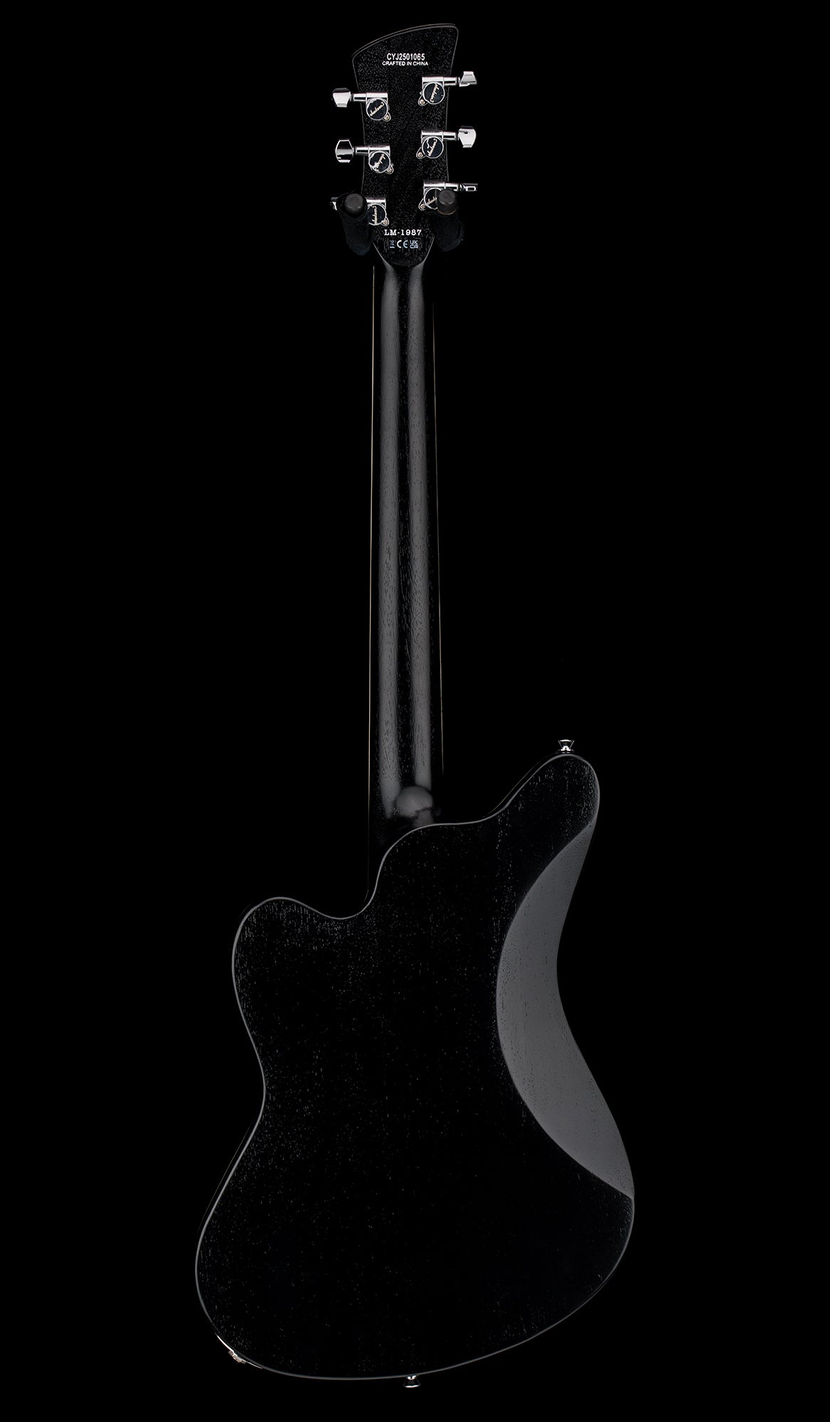 With its offset Surfcaster™ body shape and vintage appeal, the LM-87 melds classic design with modern appointments. The thin open pore finish on the bound okoume body and neck exudes organic style, while the unique 3-ply pickguard and chrome hardware add striking accents. The fast D-profile 3-piece okoume neck allows smooth riffing across the bound amaranth fingerboard.