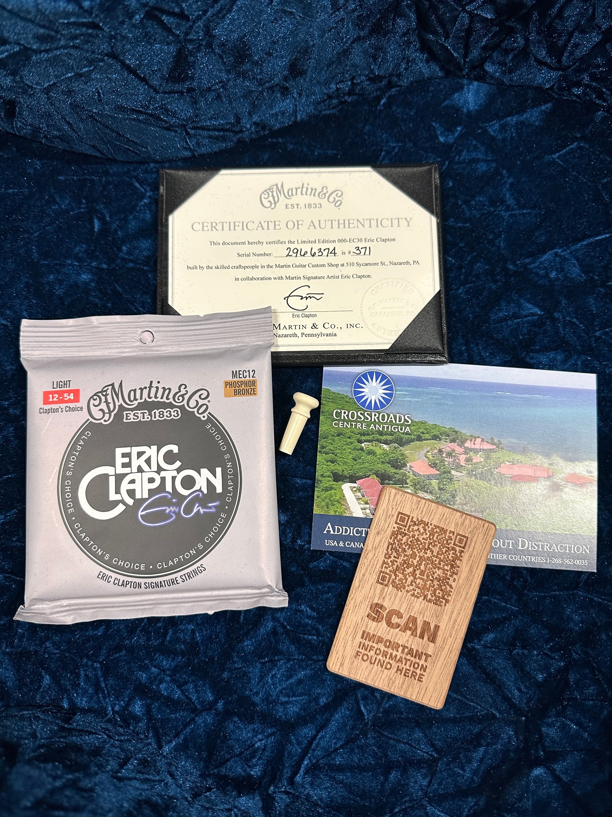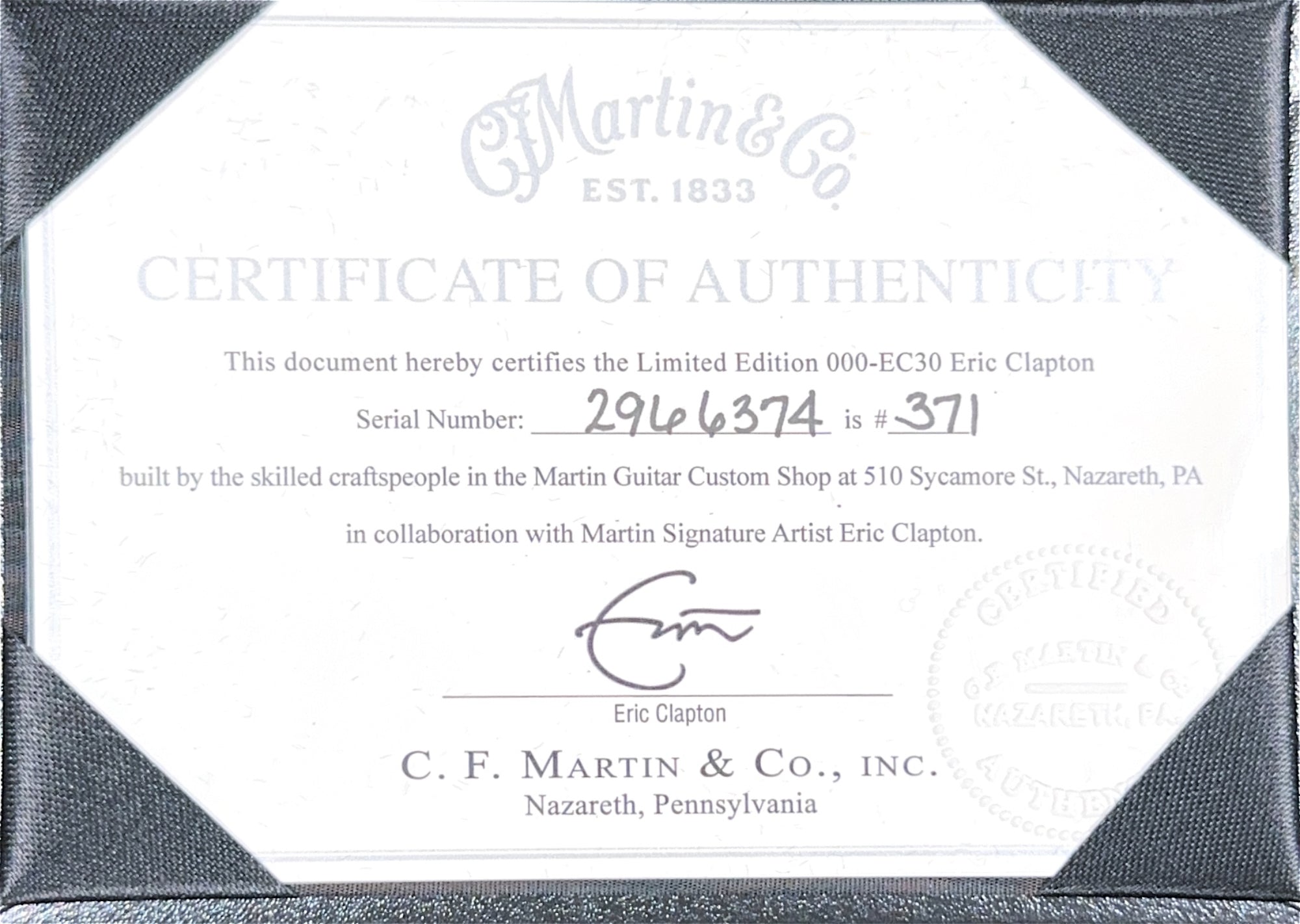 Celebrate three decades of Eric Clapton’s legendary collaboration with Martin Guitar with the 000-EC 30th Anniversary acoustic. Available only through March 2026, this milestone model features solid East Indian rosewood back and sides and a solid spruce top for a rich, resonant tone, accented by fine herringbone trim and antique white binding. This limited-edition signature model is further distinguished by its genuine mahogany neck and Authentic 1939 shape, inspired by the pre-war Martin Eric played during his iconic MTV Unplugged performance. Not only does it offer a shorter scale length, but vintage-inspired touches include a slimmer nut width and Golden Era 42-style snowflake inlay on its ebony fingerboard, combining classic looks with effortless playability. Each guitar includes a paper label with Eric’s pre-printed signature, a printed certificate of authenticity to further commemorate our longstanding partnership, and a premium, embroidered case. It even comes strung with Clapton’s Choice phosphor bronze strings for his preferred sound and feel, plus an extra set in the case pocket. For fans seeking an even more vintage vibe, explore the 000-42EC 30th Anniversary model, styled after his Unplugged guitar. Together, these instruments honor 30 years of groundbreaking guitar collaboration, offering something for every fan of Eric and Martin.