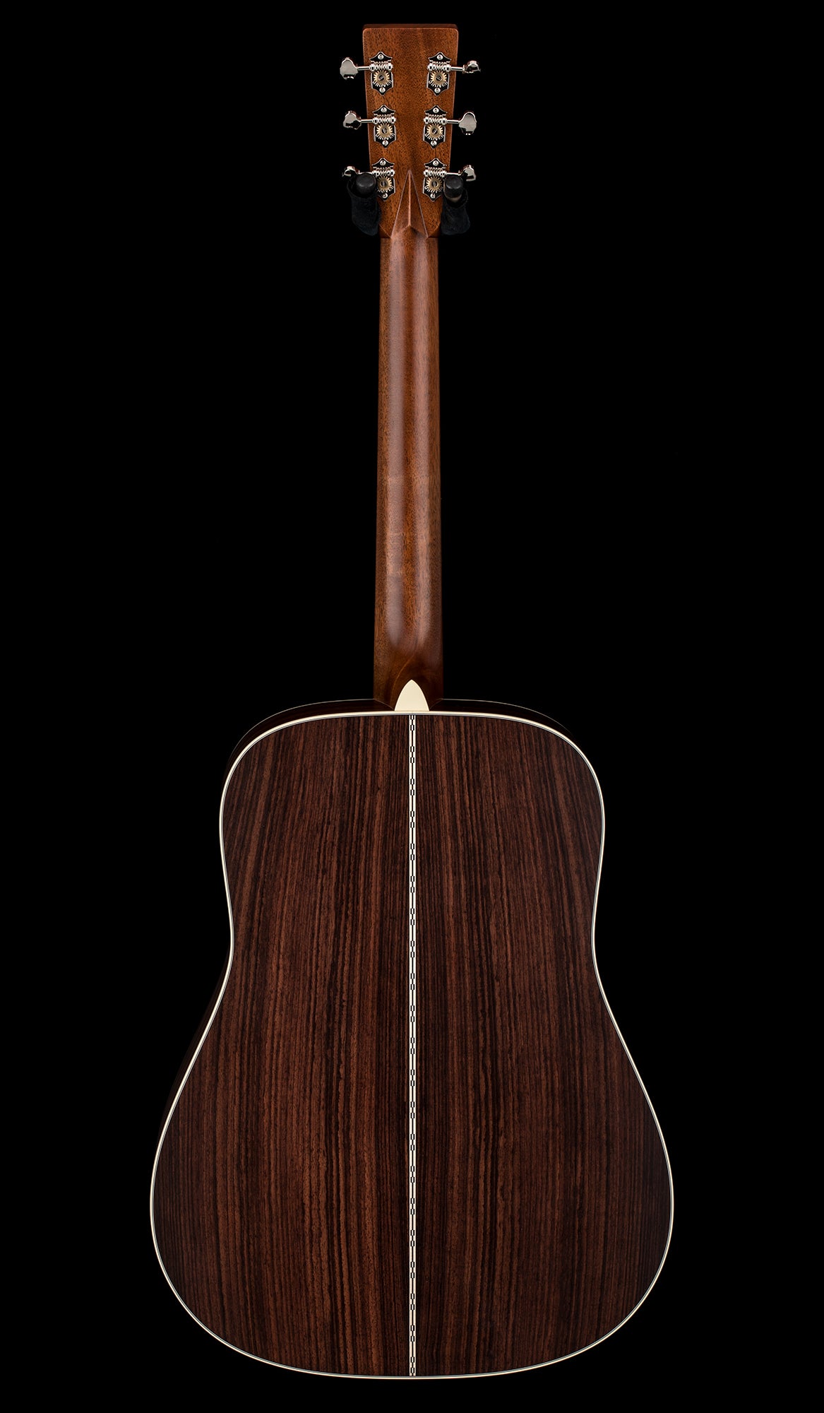 The Martin D-28 is widely regarded as the most iconic acoustic guitar in the world, trusted by generations of players and played by countless legends across genres. Its Dreadnought body size and scalloped bracing delivers the bold, projective tone with strong bass, clear trebles, and rich overtones that has defined acoustic music for nearly a century. Handcrafted with a solid spruce top and solid East Indian rosewood back and sides, the D-28 produces a resonant voice that’s beautifully balanced for all playing styles. The satin neck, featuring a Golden Era (GE) Modified Low Oval profile, high-performance taper, and 25.4" scale length, ensures smooth, effortless playability. With antique white binding, an ebony fingerboard with mother of pearl dot inlays, an ebony bridge with bone pins, and nickel open gear tuners, the D-28 blends timeless craftsmanship with modern playability.
