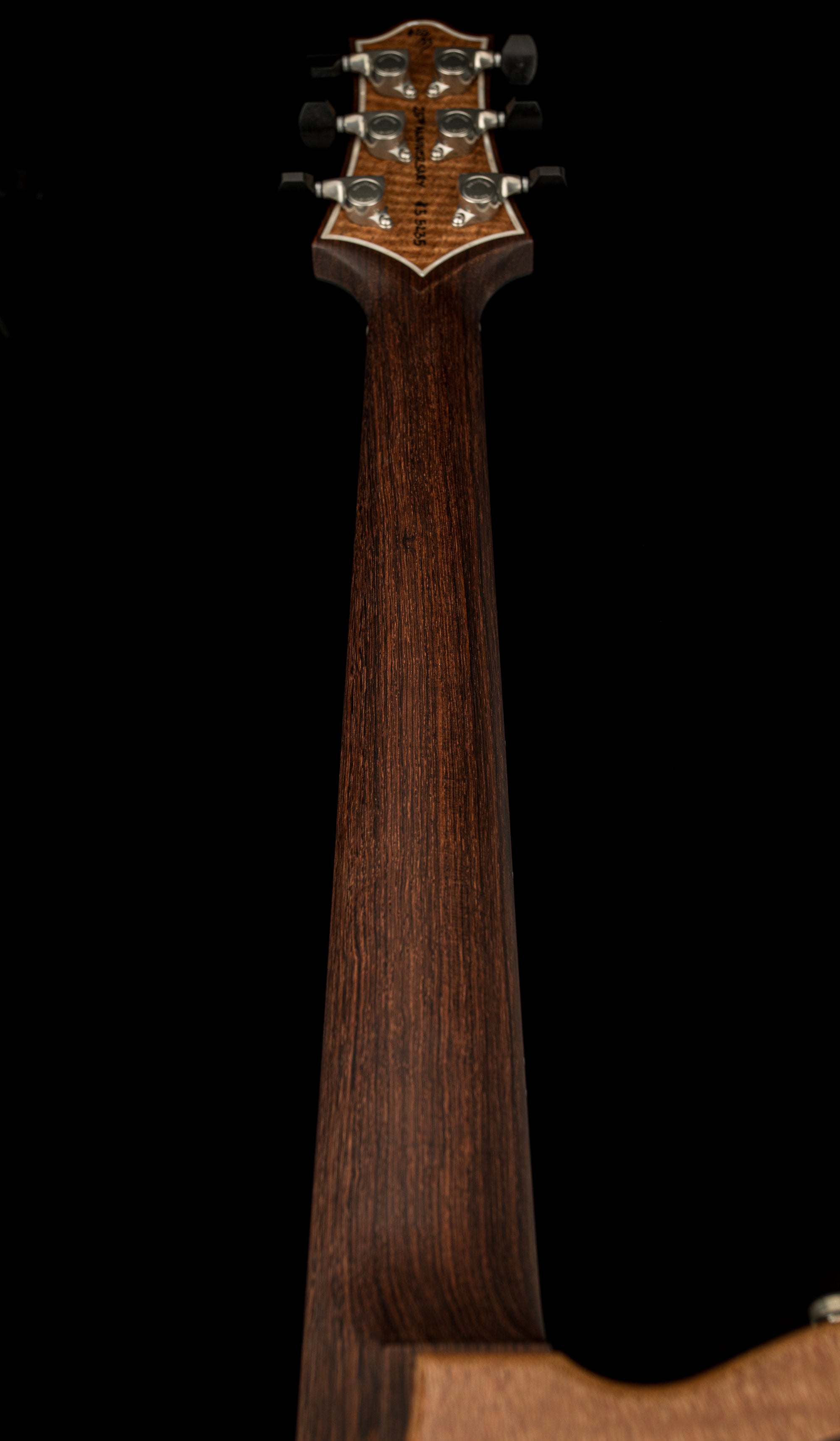Rosewood appointments match the neck and fretboard, and as a special finishing touch, the fretboard, headstock, engraved trussrod cover, flame maple headstock insert and rosewood back panels feature white pearl and sterling silver purfling, matching the fretboard inlays and signature headstock inlay in the same combination of materials.