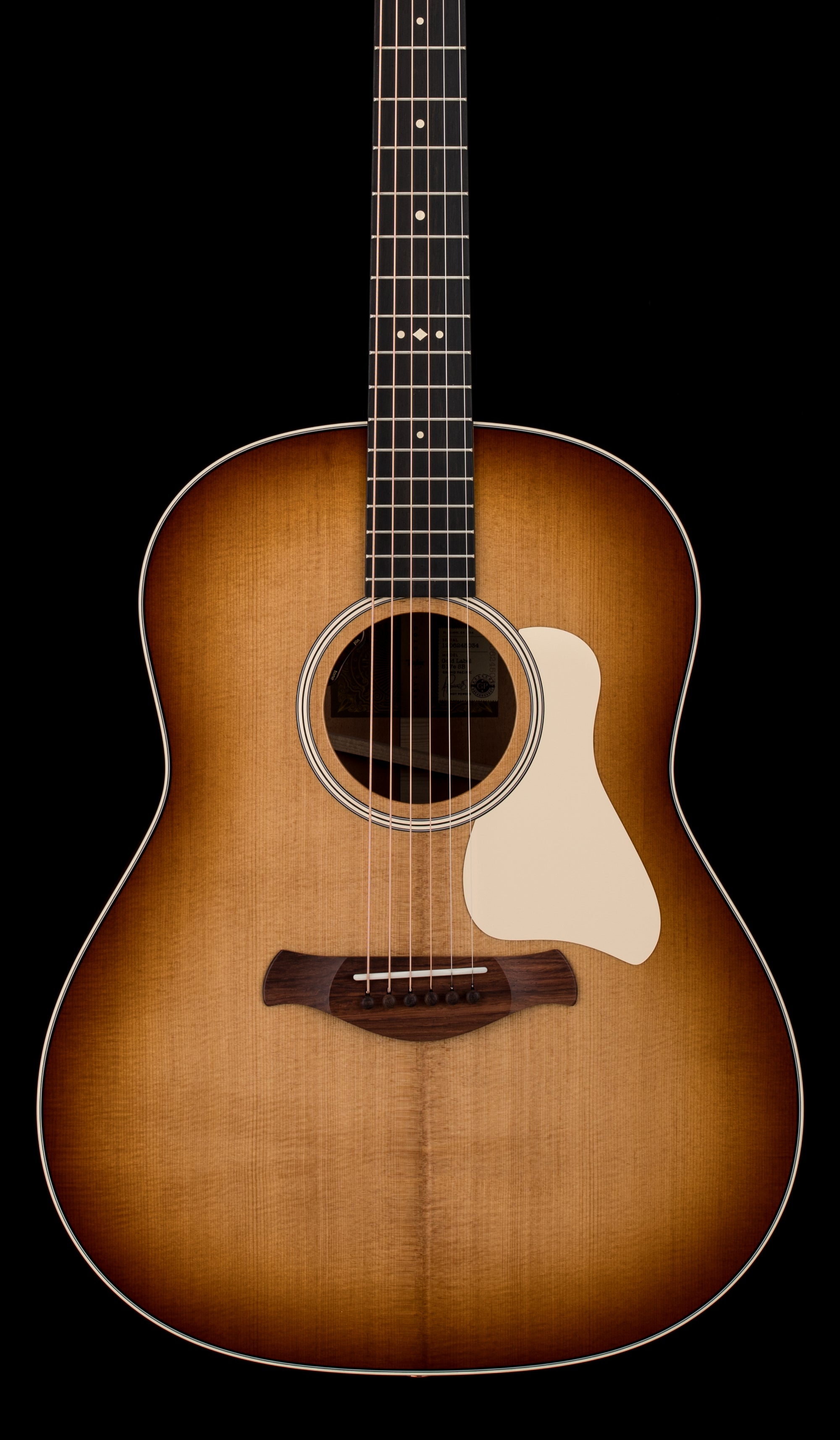 Andy Powers has reimagined his Grand Pacific shape with a deeper-bodied design for the Gold Label Collection — it’s 3/8-inch deeper (5-inch body depth at the soundhole). The extra depth gives the guitar extra “lung capacity” and a deeper resonant frequency. This translates into more low-end expansiveness, power and projection. The guitar has more sonic push toward an audience or a microphone, yet with pleasing musical clarity. Even the treble notes have enhanced warmth and depth.