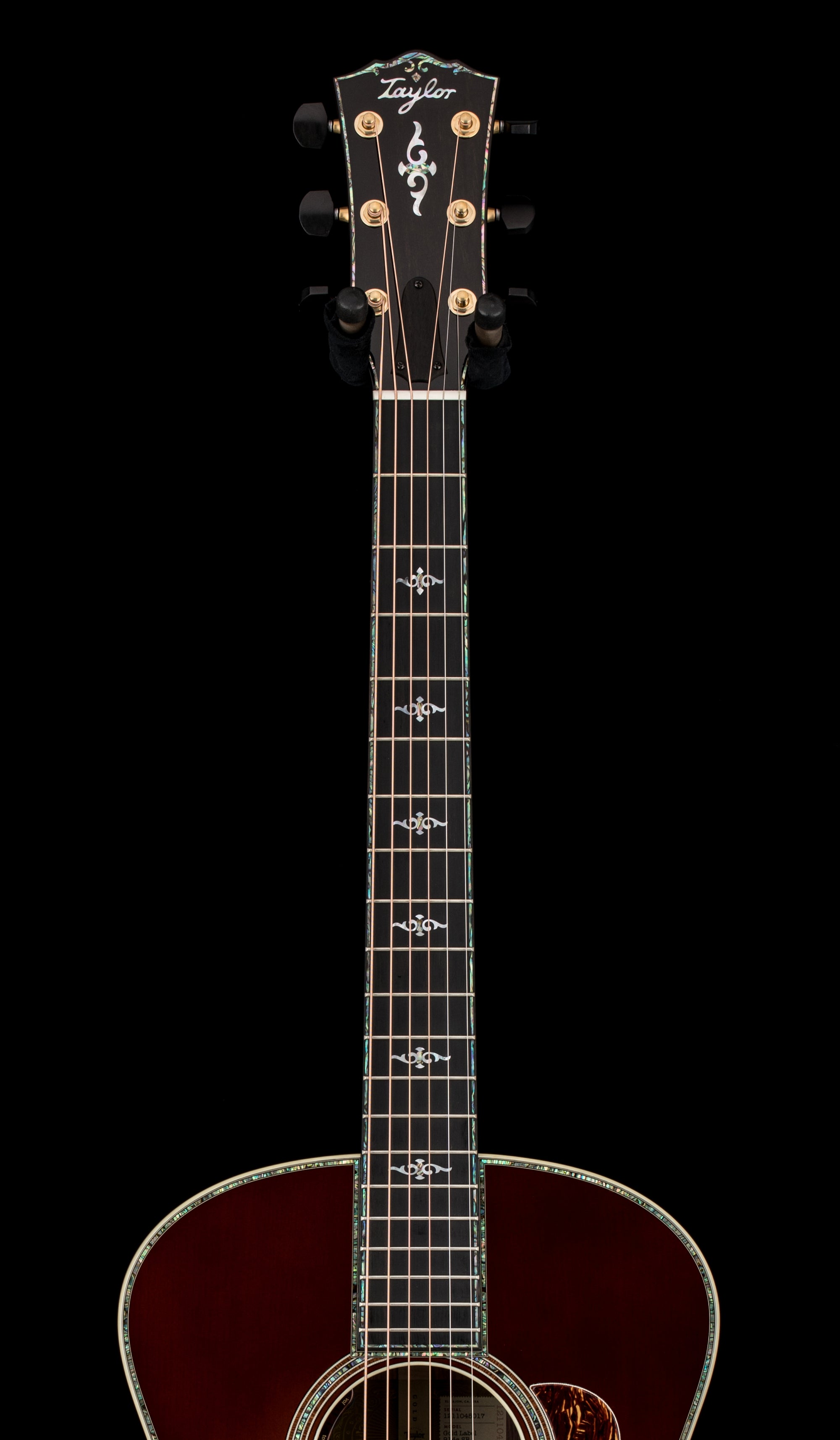 Inside, fanned V-Class® bracing unlocks impressive low-end resonance and midrange richness in addition to delivering the inherent benefits of the V-Class platform: louder volume, longer sustain and remarkable pitch accuracy all the way up the neck. A revolutionary Action Control Neck™ allows players to fine-tune string height in minutes without removing the neck or strings. Its long-tenon design enhances the wood coupling between neck and body for even greater low-end depth and its slender profile ensures familiar Taylor playability.