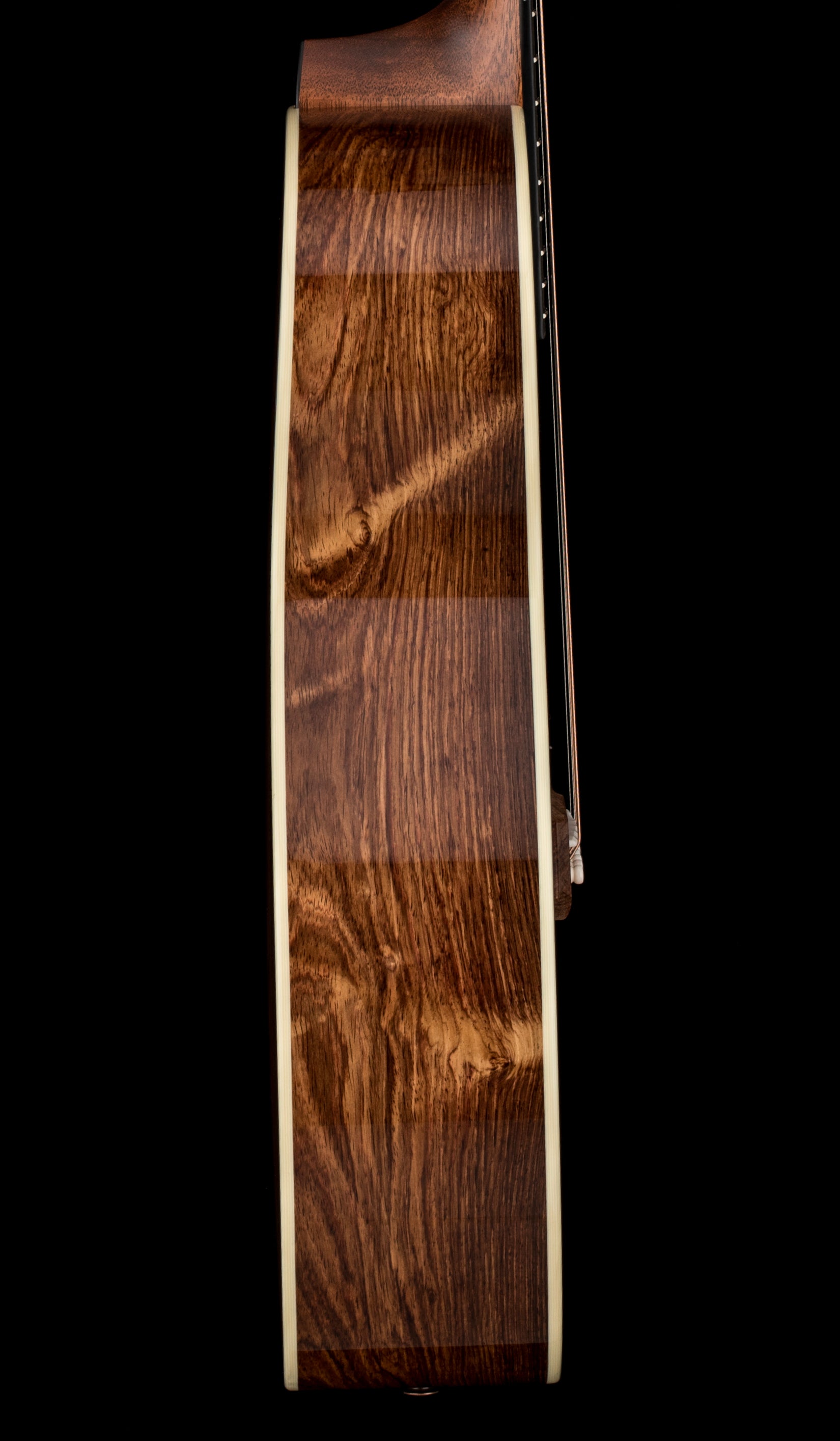 With its premium-grade tonewoods, a golden-brown “Teardrop Sunburst” top and a suite of dazzling appointments, the Gold Label 914e SB represents the height of visual and tonal sophistication within the Gold Label Collection. Solid Honduran rosewood is paired with a torrefied Adirondack spruce top in a Super Auditorium body, yielding a deep, warm, beautifully textured voice marked by blooming overtones and a played-in sonic personality. Heavier strummers will appreciate how the Adirondack top’s extra headroom encourages them to really dig in.