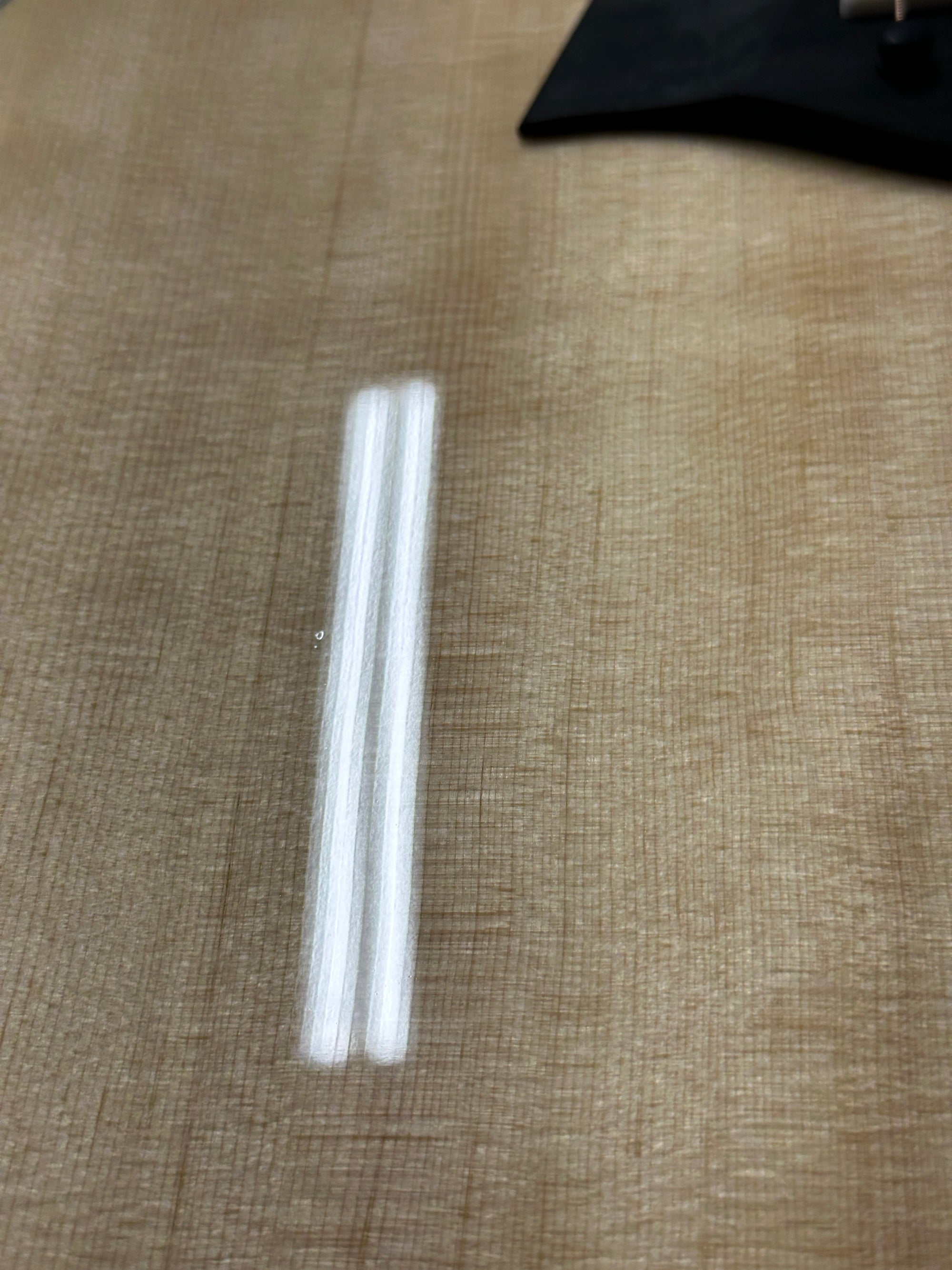 Note: After close inspection, this instrument has minor impressions on the low E string side of the top. (See pics, light reflections used to show wear)