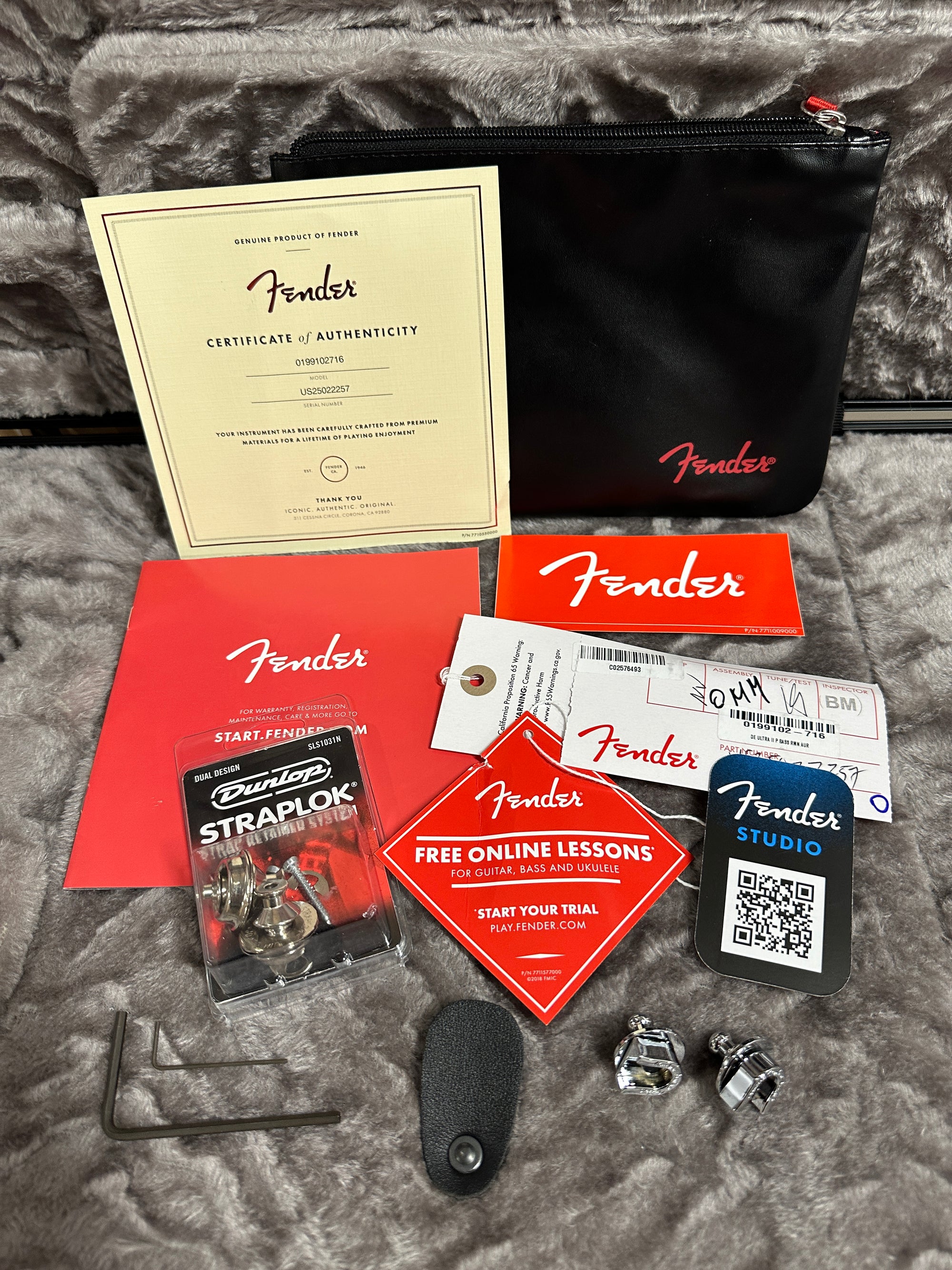Outfitted with a set of specially designed Ultra II Noiseless™ Vintage pickups, this bass delivers a massive tonal range, from vintage warmth to modern snap, all without a hint of hum. The redesigned preamp features unprecedented control to unlock endless tonal possibilities. Key features include S-1™ switching for active/passive operation, passive tone control and 3-band active EQ with switchable midrange frequency. Additional road-ready features including an adjustable HiMass™ top-load or string-through-body bridge, Fender light-weight tuners with tapered shafts, knurled aluminum knobs and 1-ply anodized aluminum pickguard.