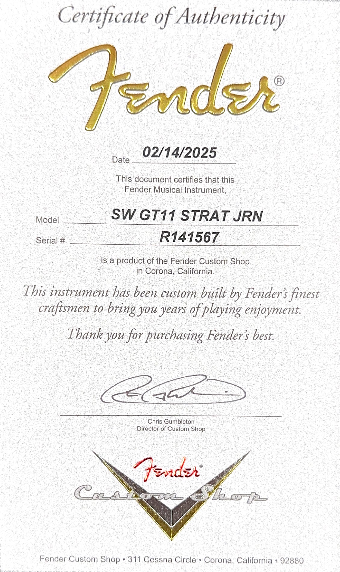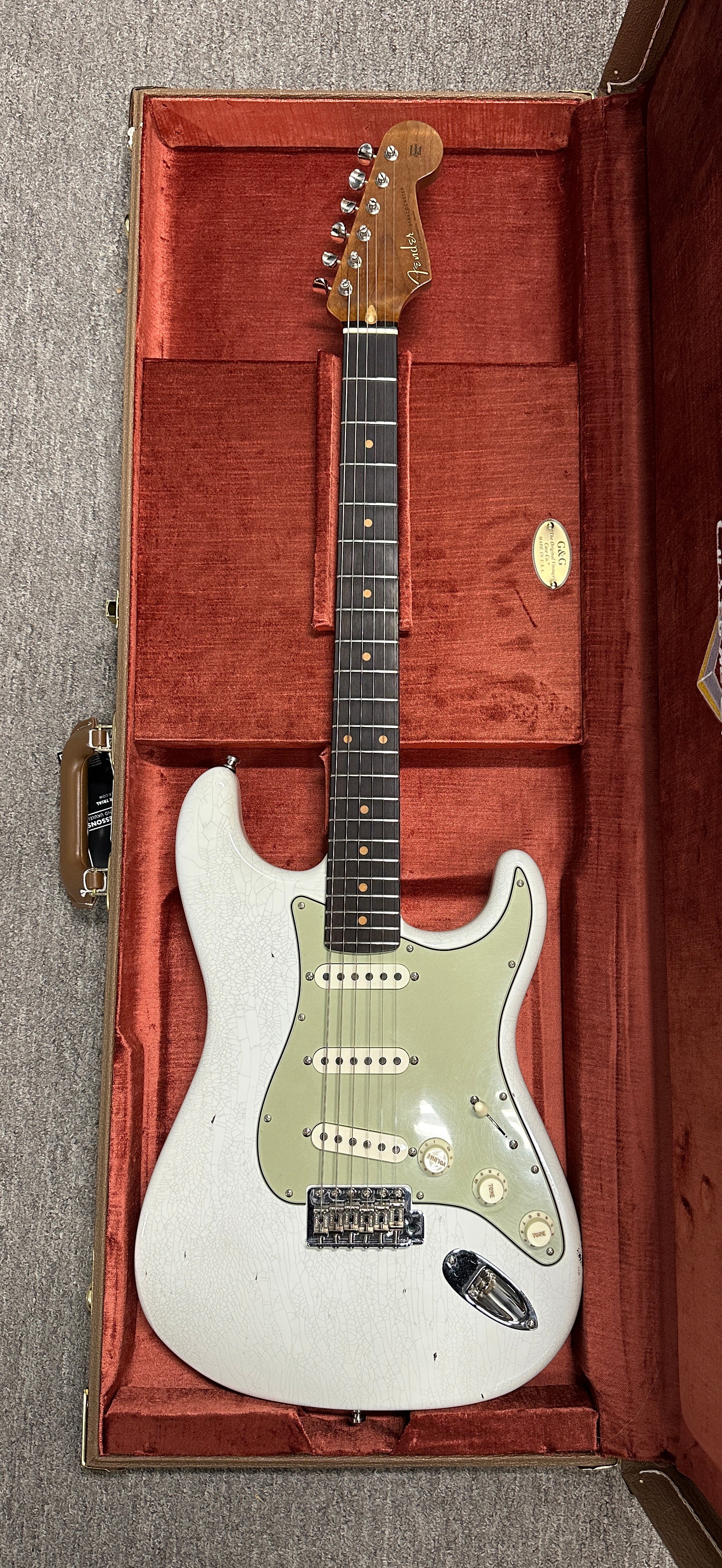This Fender Custom Shop Sweetwater GT11 Stratocaster is in EXCELLENT overall condition. Cosmetically, it is very clean, only showing some very light play wear. This is a used instrument, so it may have minor finish scratching and minor playwear. Any significant marks will be mentioned in the description. All used models receive a full factory setup and hand-inspection before shipping.