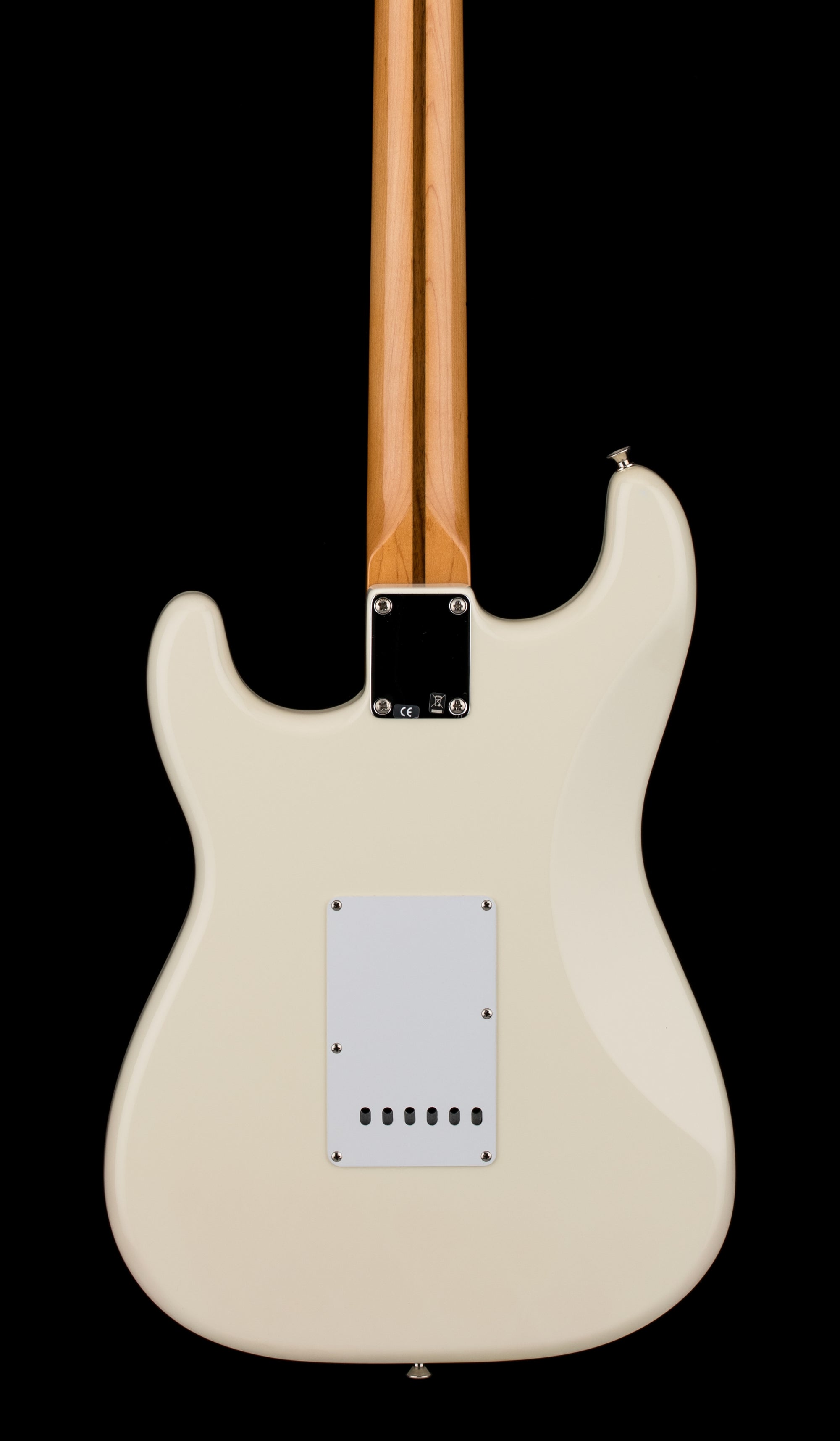 A modified version of a famous Strat seen at Woodstock, the flipped headstock reverses the length of the strings, and combined with the reverse-slant bridge pickup, delivers feel and tone uniquely different from traditional Stratocasters. 3 vintage-style single-coil pickups with staggered pole pieces, alnico magnets, and aged covers generate vintage styling and tone.