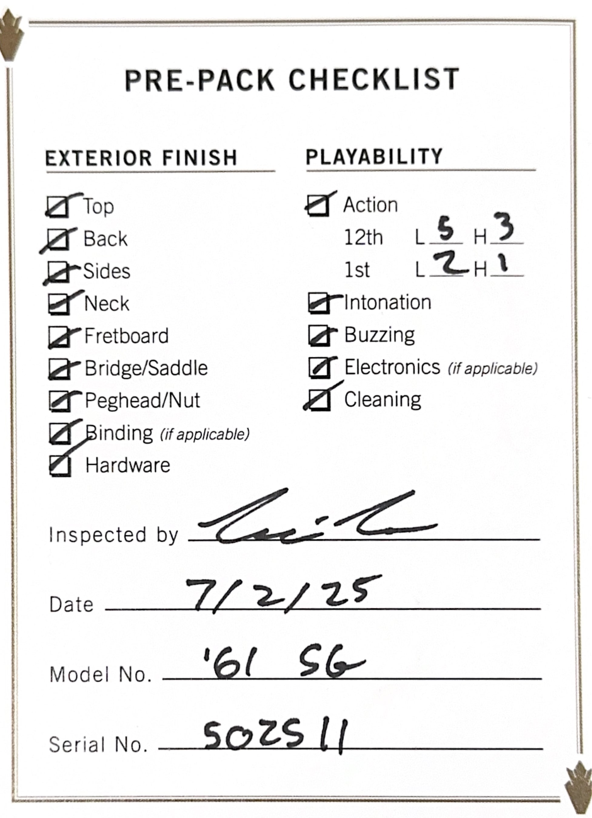 Used Gibson Custom Shop 1961 Les Paul SG Standard Reissue (2025) - Cherry Red #02511 with Original Hard Case