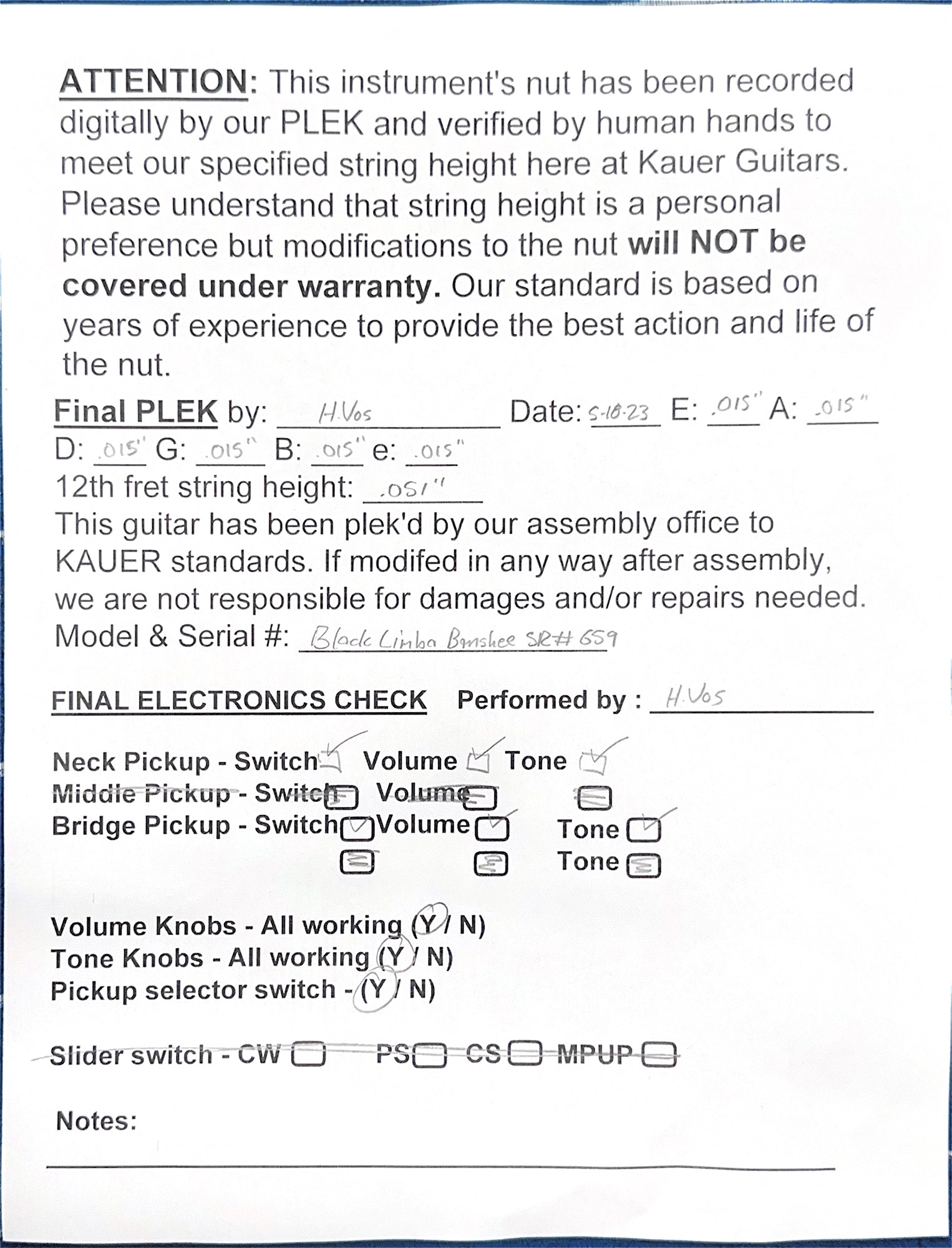 Used Kauer Guitars Banshee Black Limba (2023) #659 with Original Case