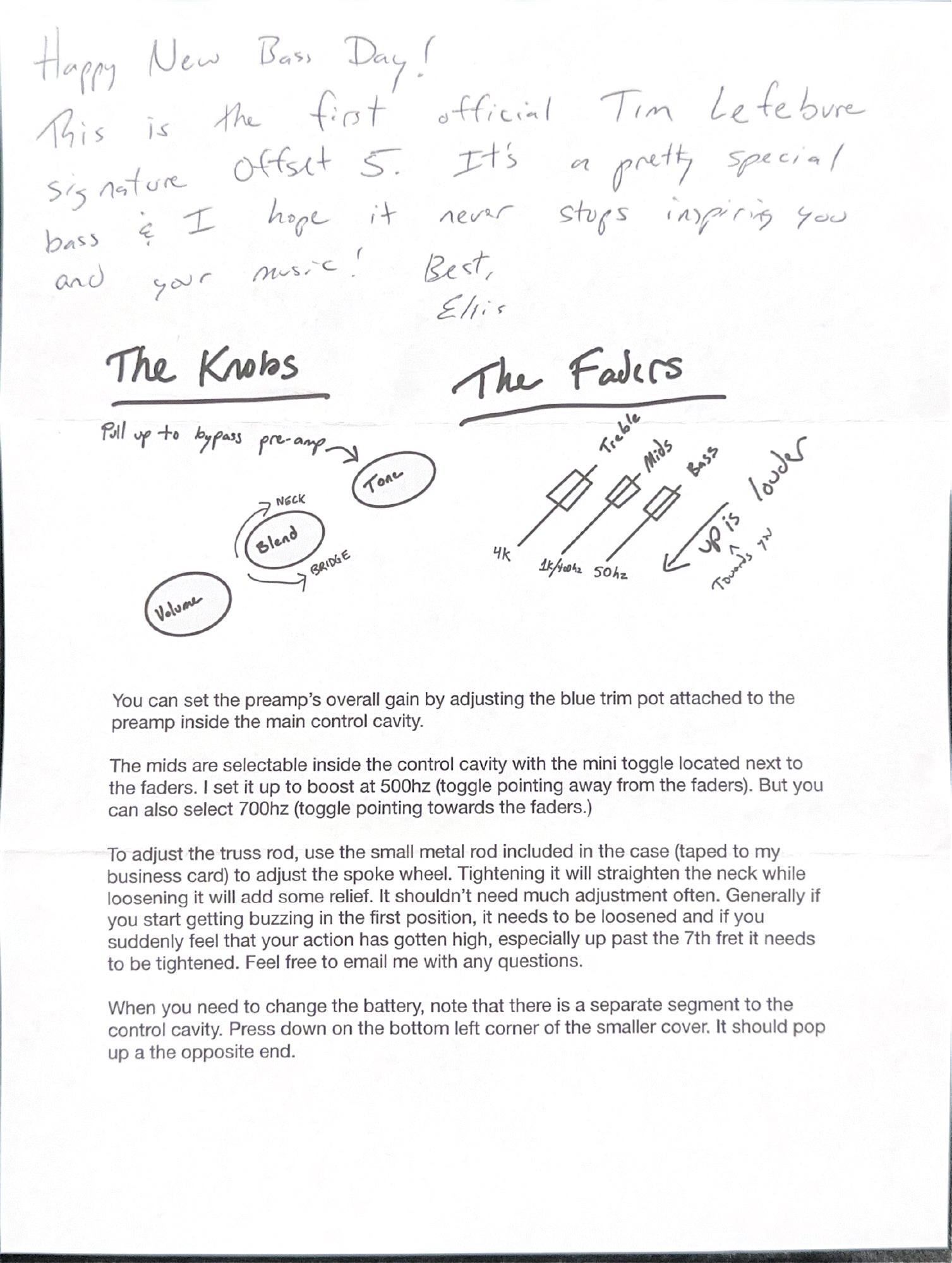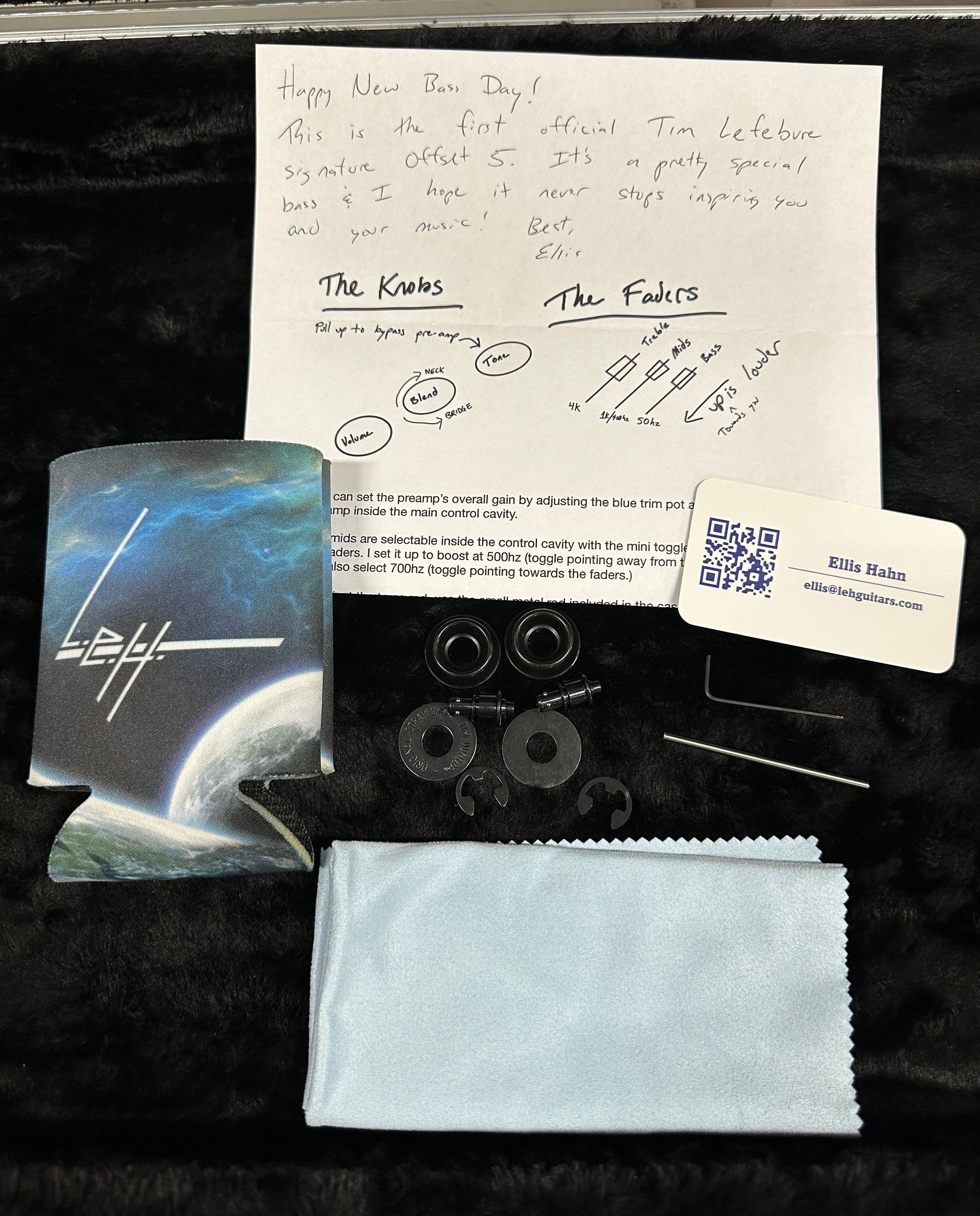 The Offset is the original bass first built by L.E.H. Designed with balance in mind, the body shape has an exaggerated offset at the waist, keeping the center of gravity right where you want it. To further enhance the instrument's balance and resonance, there are weight reducing chambers in the neck side of the body only.