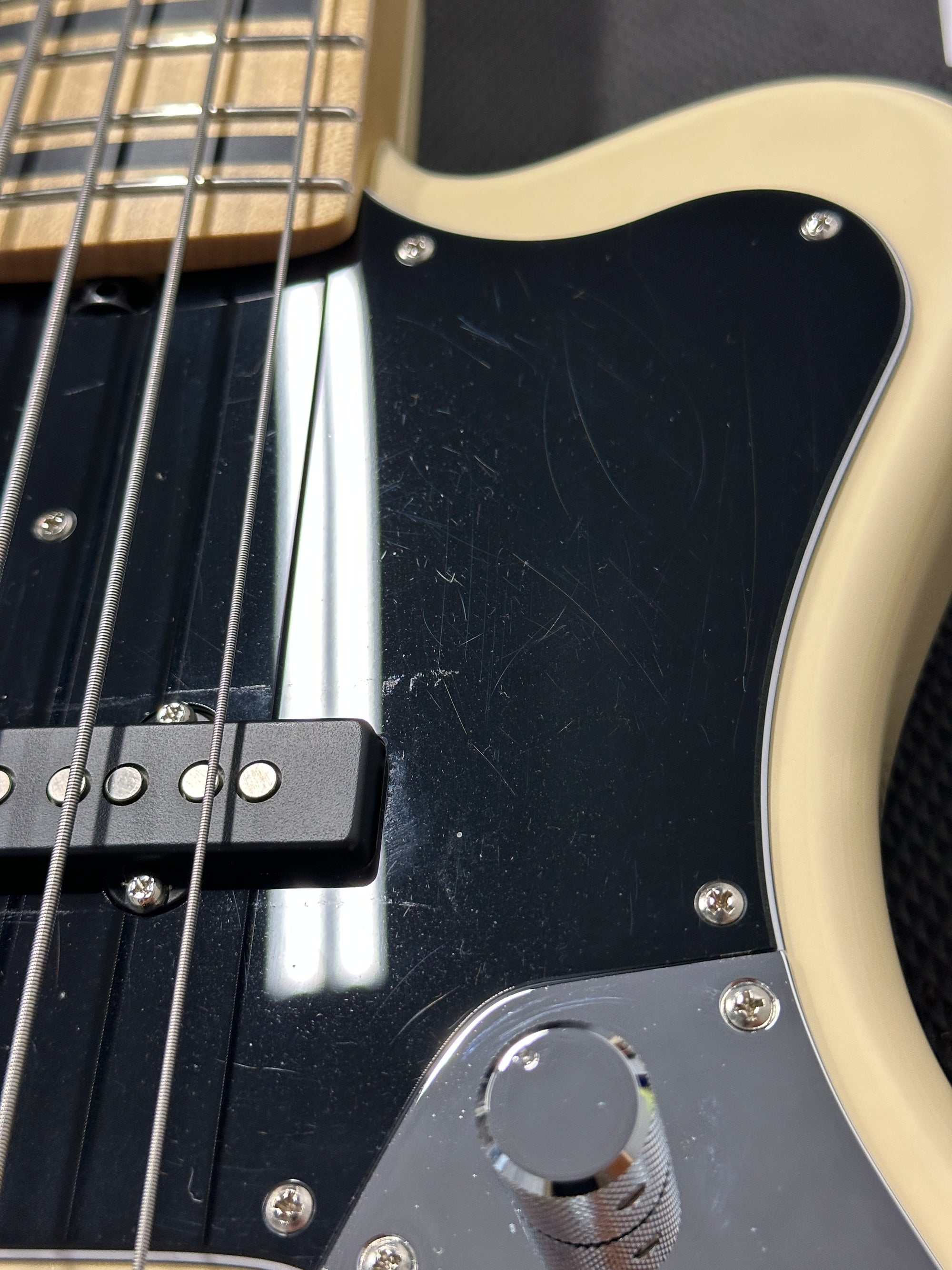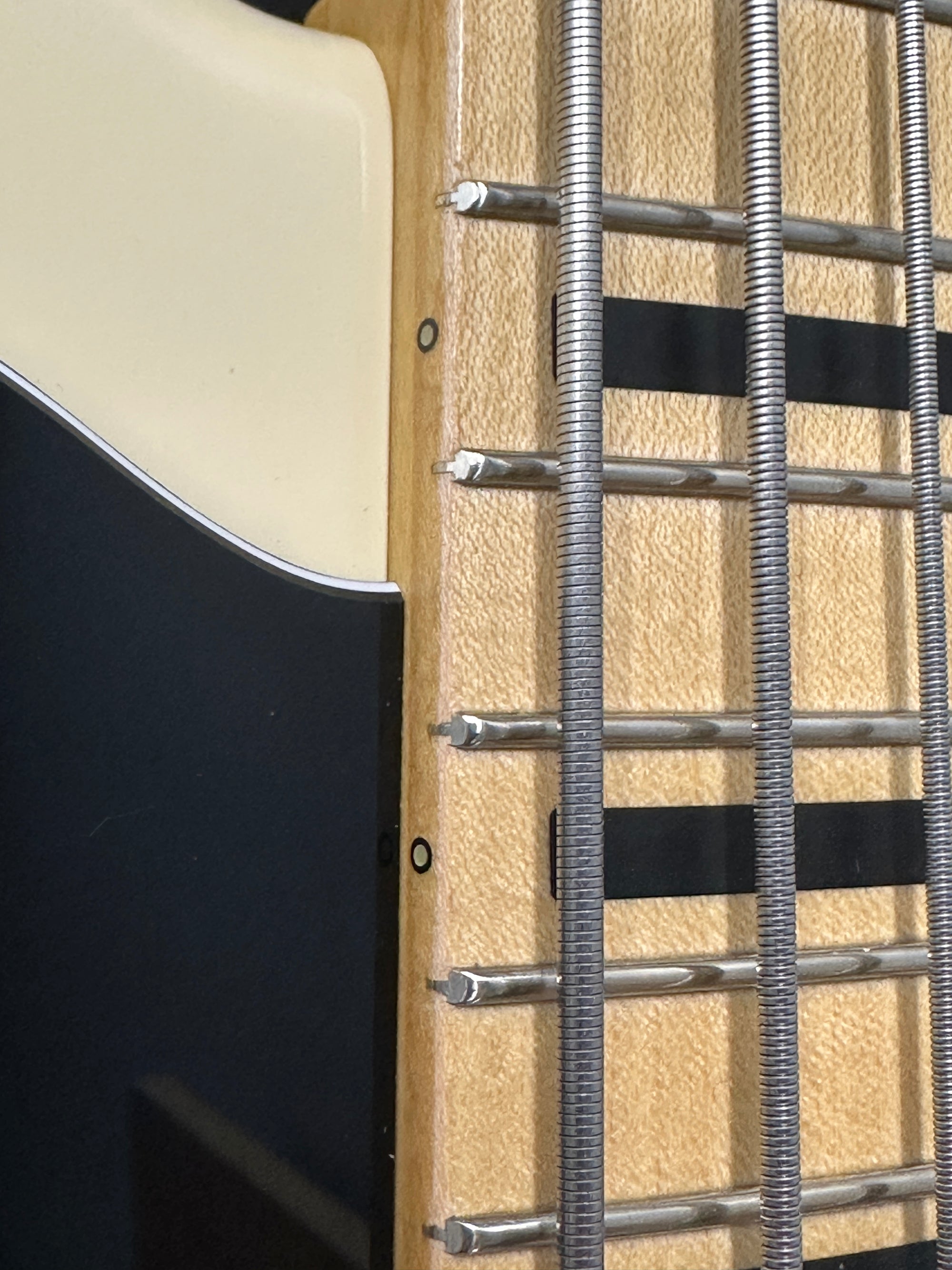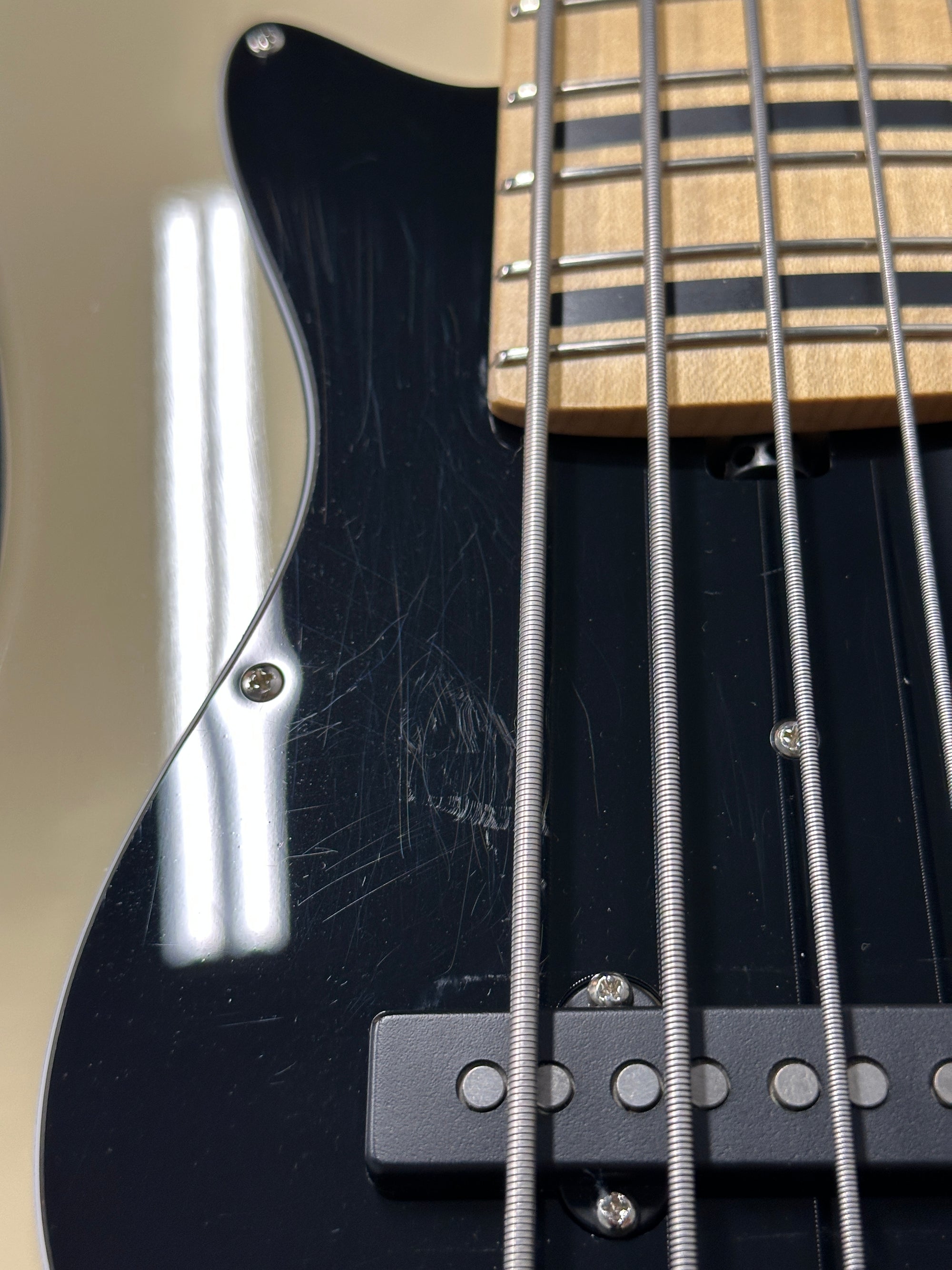 Note: After close inspection, this instrument has sanding on the fretboard edges and pickguard scratching. Currently strung with flatwound strings. (See pics)