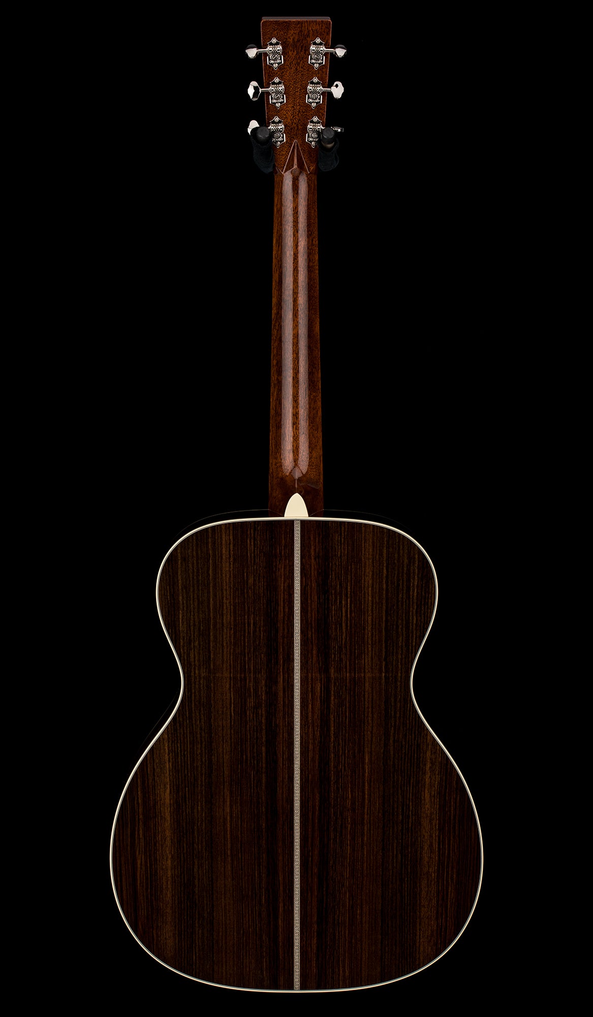 The popular Martin 000-28EC signature model is a meticulously crafted tribute to the pre-war guitar played by Eric Clapton during his legendary MTV Unplugged performance. Its 000 body size delivers a well-balanced tone across all six strings, and the East Indian rosewood back and sides offer rich resonance and depth, complemented by a spruce top for clarity and brightness. A shorter 24.9" scale length, preferred by Clapton, is ideal for both fingerstyle playing and expressive bends, while the modified V neck made from genuine mahogany provides comfort and control. The guitar's looks are enhanced with antique toner on top, herringbone inlay, and a full gloss finish. Whether you're playing Slowhand's classics or your own unplugged tunes, this special edition guitar embodies Clapton's influence on acoustic music, offering the same tonal richness and playability that marked his iconic performance and career.