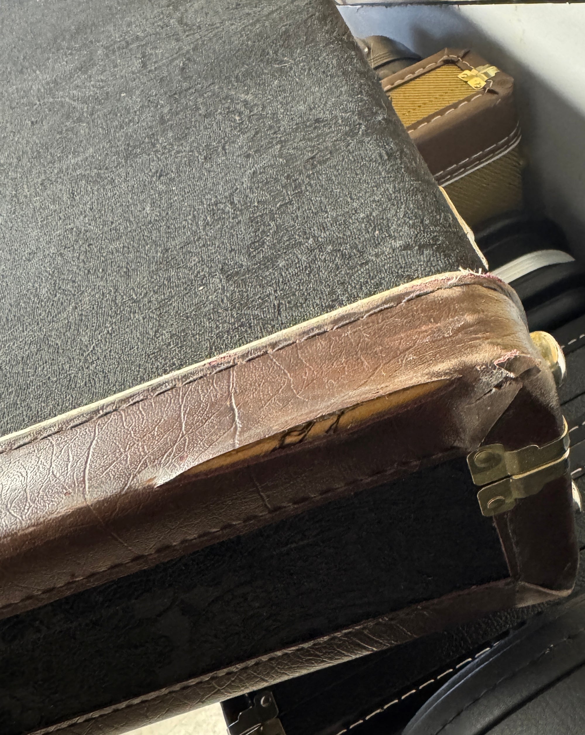 Note: After close inspection, this instrument has light scratching throughout and an impression on the lower back of the body. Case has damage on the bottom edge of the leather. Original bridge pickup has been replaced with a Bareknuckle humbucker. (See pics, light reflections used to show wear)