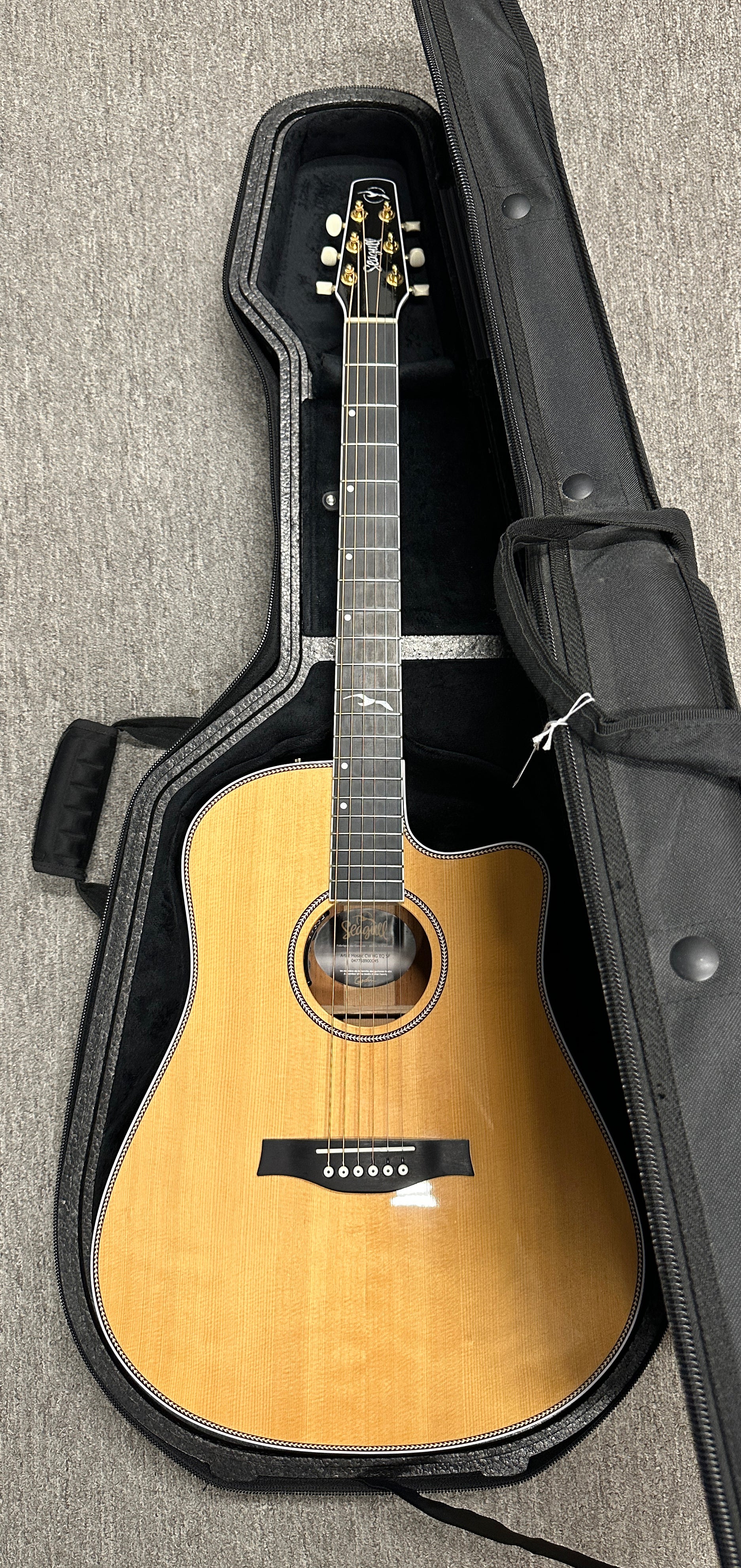 This Seagull Artist Mosaic CW HG EQ is in EXCELLENT overall condition. Cosmetically, it is very clean, only showing some very light play wear. This is a used instrument, so it may have minor finish scratching and minor playwear. Any significant marks will be mentioned in the description. All used models receive a full factory setup and hand-inspection before shipping.