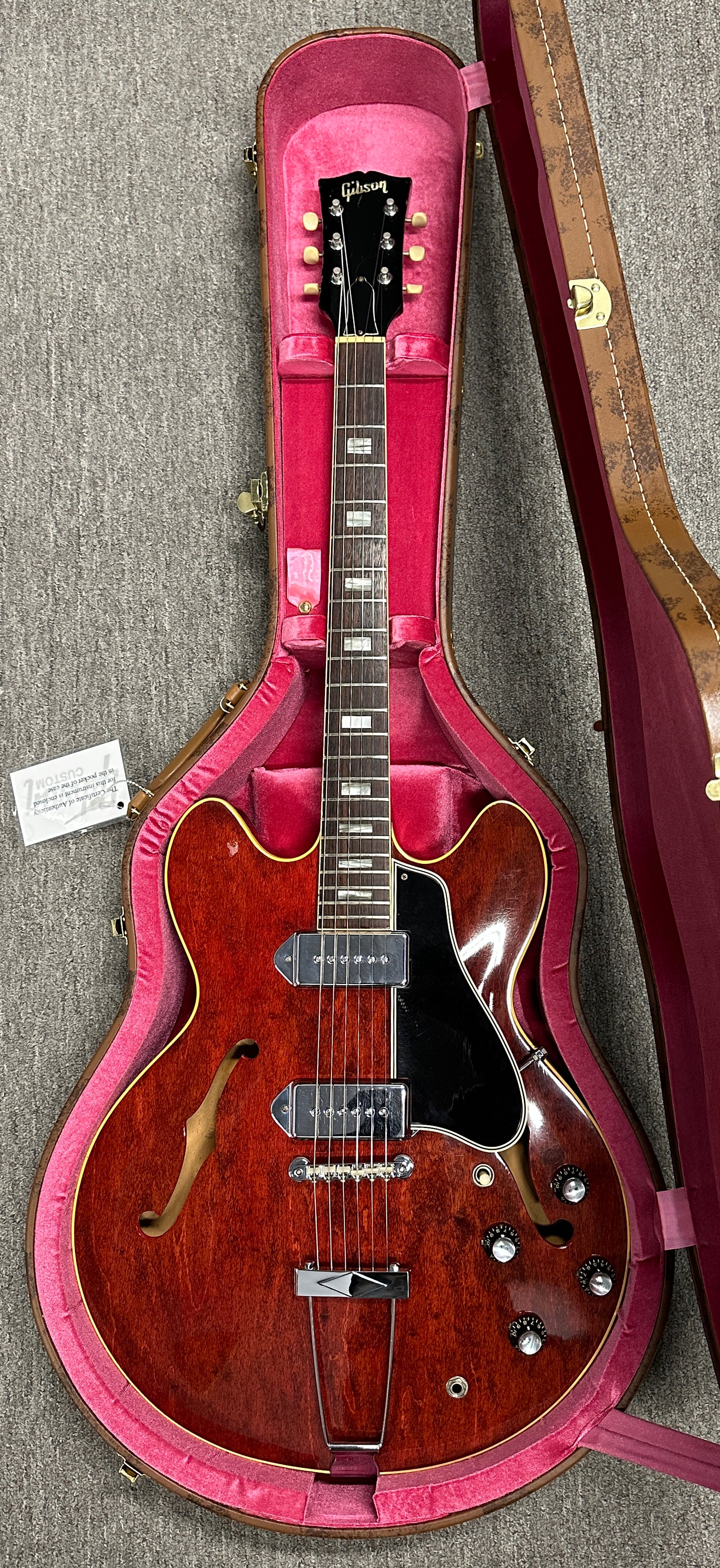 Made at the end of Ted McCarty's tenure as President of Gibson Guitar Corporation in 1966, this hollow-body guitar is in great condition for it's age. The resonant sound of the curly maple body is complimented by a one-piece mahogany neck and Brazilian rosewood fingerboard. The all original electronics provide unmatched tone from the adjustable pole P-90 pickups.